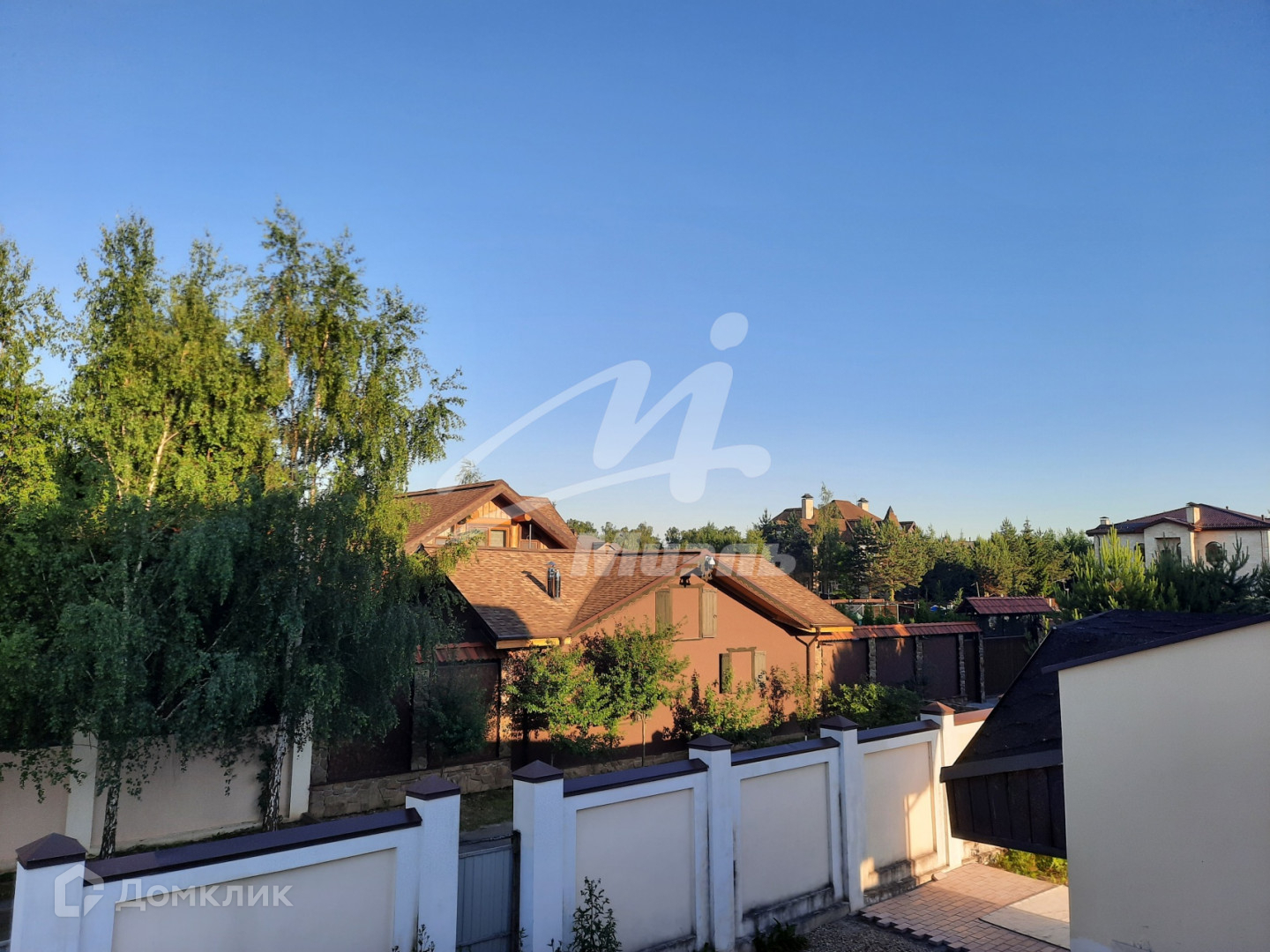 Дом располагается на участке 16 соток правильной формы, с хвойными деревьями. Имеется ландшафтный дизайн-проект.