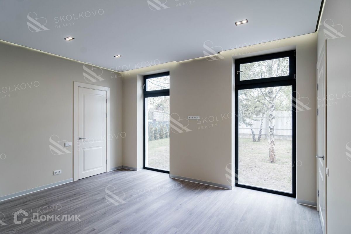 Дом выполнен в современном стиле. Витражное остекление и большое количество окон наполняет дом светом и пространством. В отделке использованы только высококачественные материалы. Здесь есть все для комфортной жизни. Просторная кухня с потолками 3,15 метров с выходом на террасу. 5 спален со своими гардеробными и ванными комнатами, кабинет.