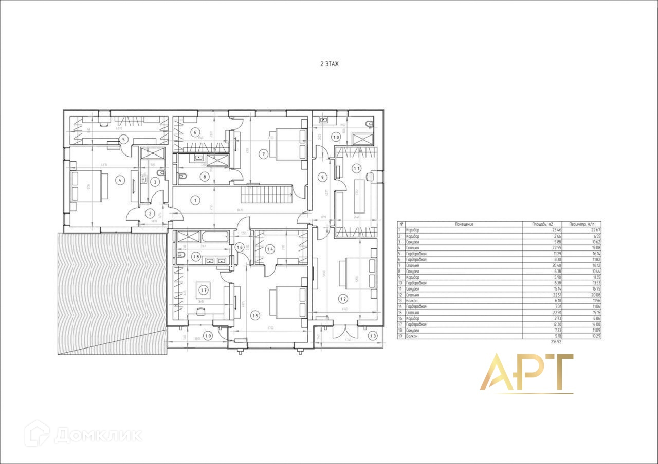 2 этаж: мастер-спальня с выходом на балкон, большой гардеробной и с/у, 3 спальни с гардеробными и с/у.