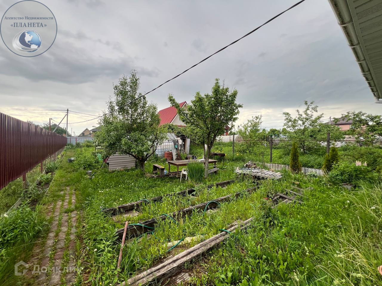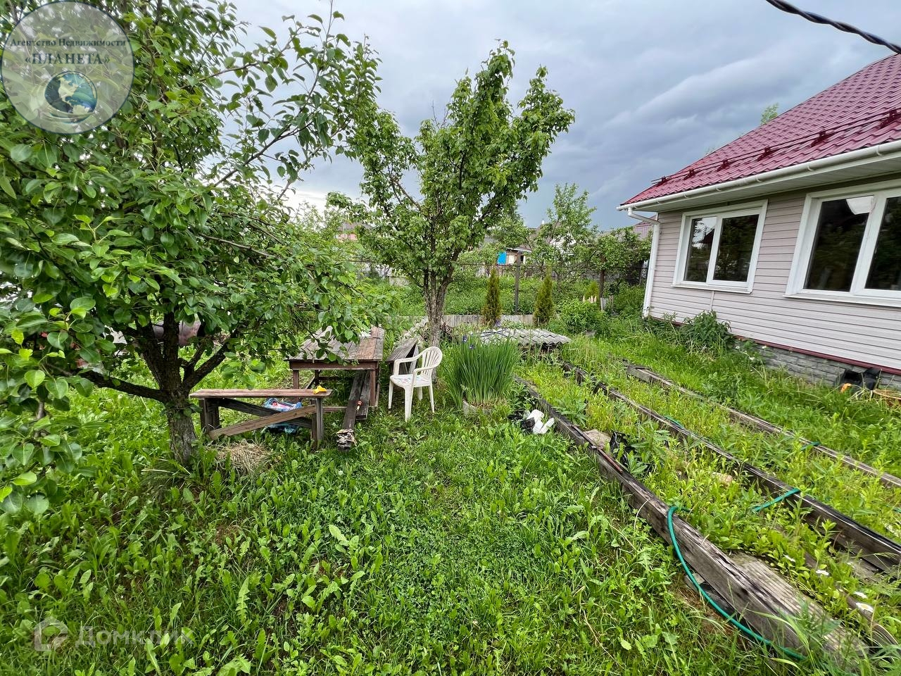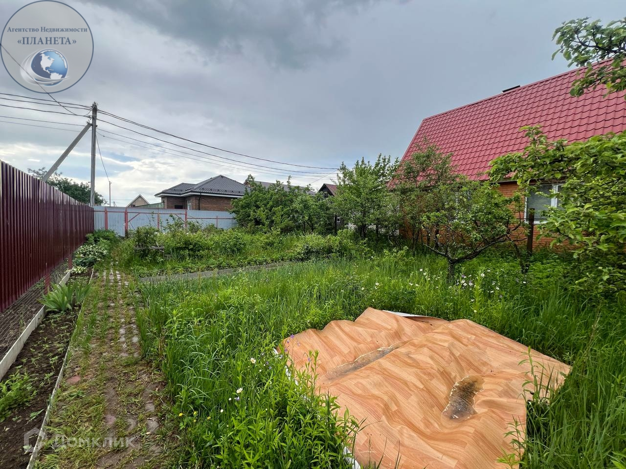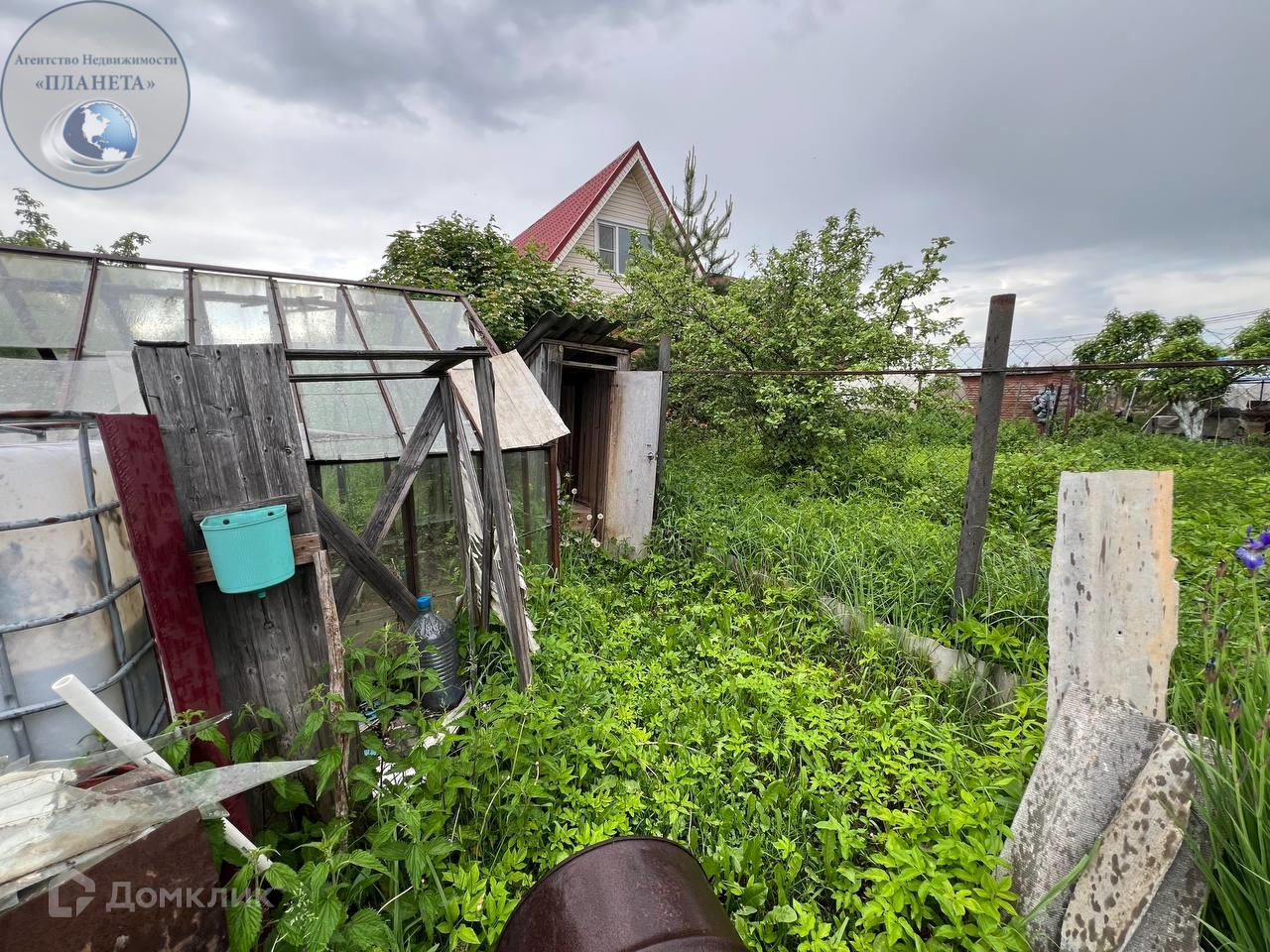 На участке расположены колодец,зона барбекю, летний душ,теплица,хозблок,плодовые деревья. Место для машины и дорожки выложены брусчаткой.