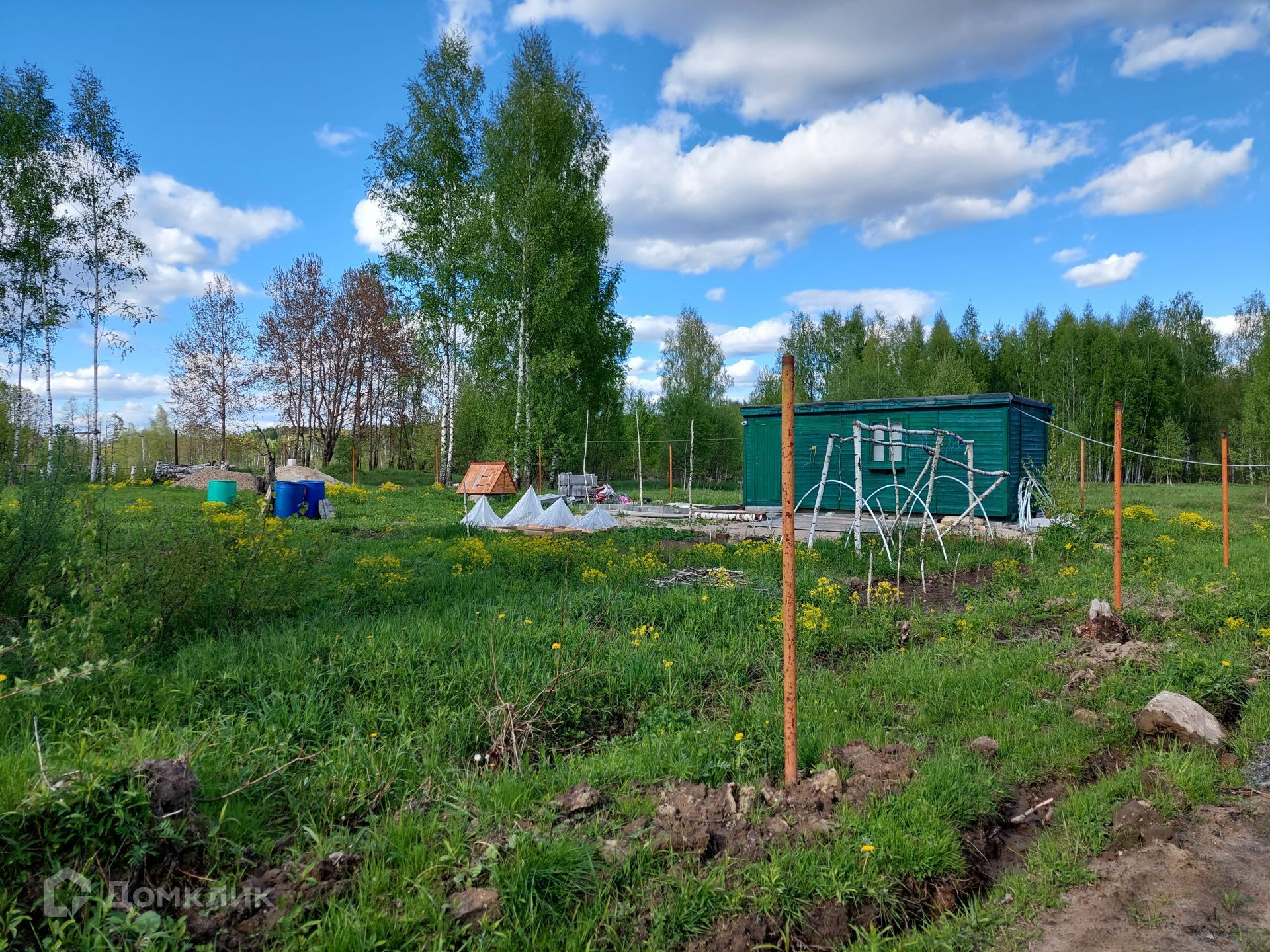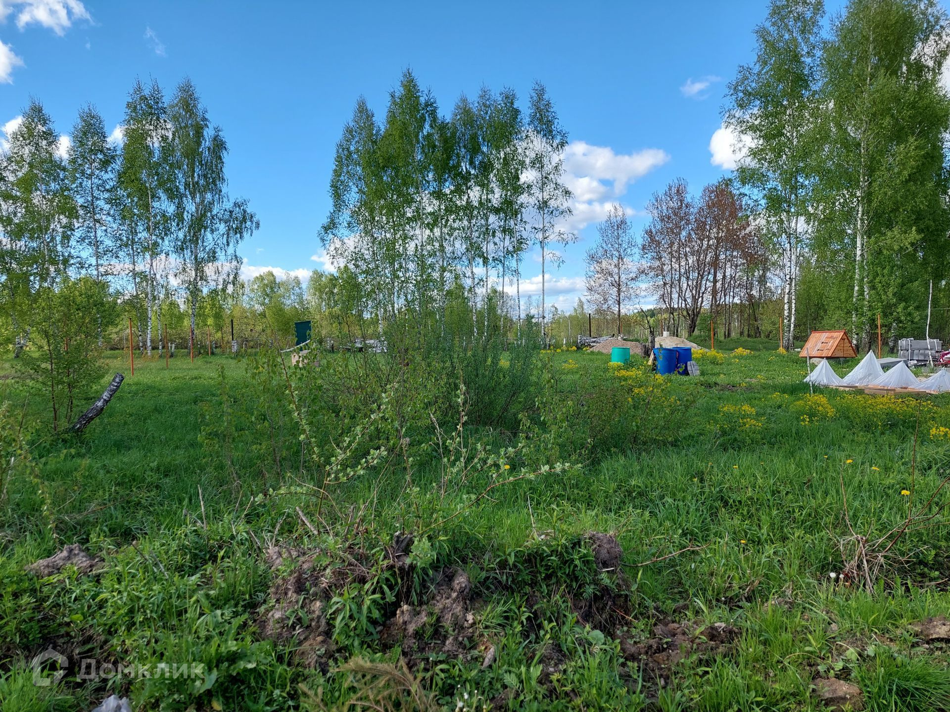 Ровный, сухой, высокий участок прямоугольной формы, размером 27 × 54. На участке есть деревья, можно убрать или оставить для атмосферы. Территория позволит вам построить дом, баню, веранду или иные постройки.