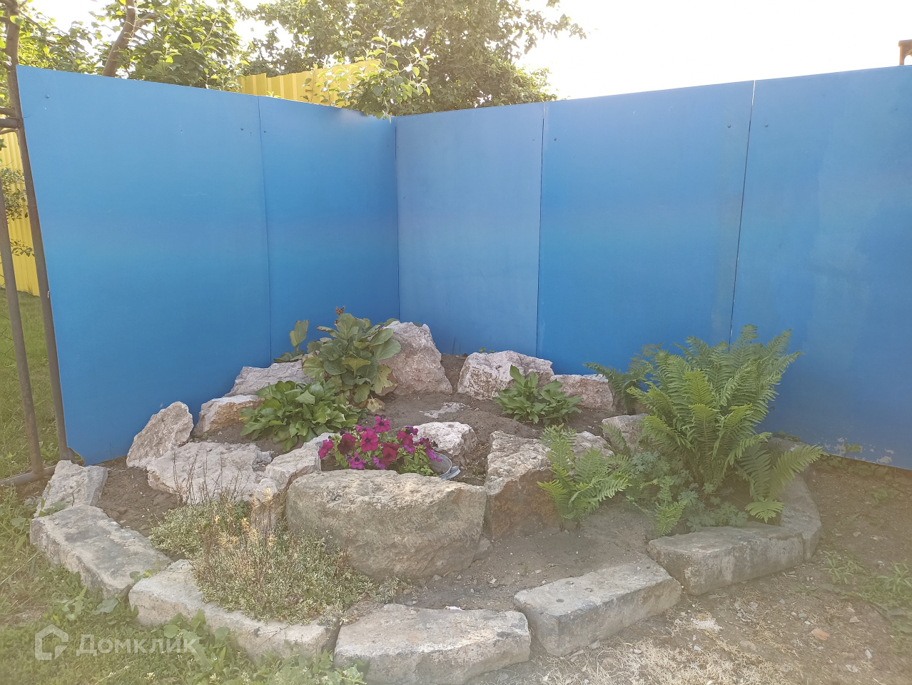 Огород ровный, ухоженный. Сделан пруд с водопадом, можно туда запустить рыбок. В пруду есть фонтан, из кувшина бежит вода, если включить,то можно любоваться купанием птичек.