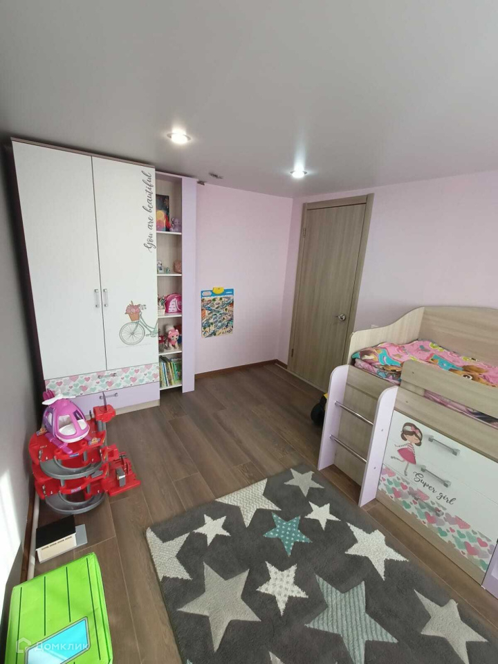 В доме две спальни, в комнате шкаф-купе, зал и столовая совмещены.