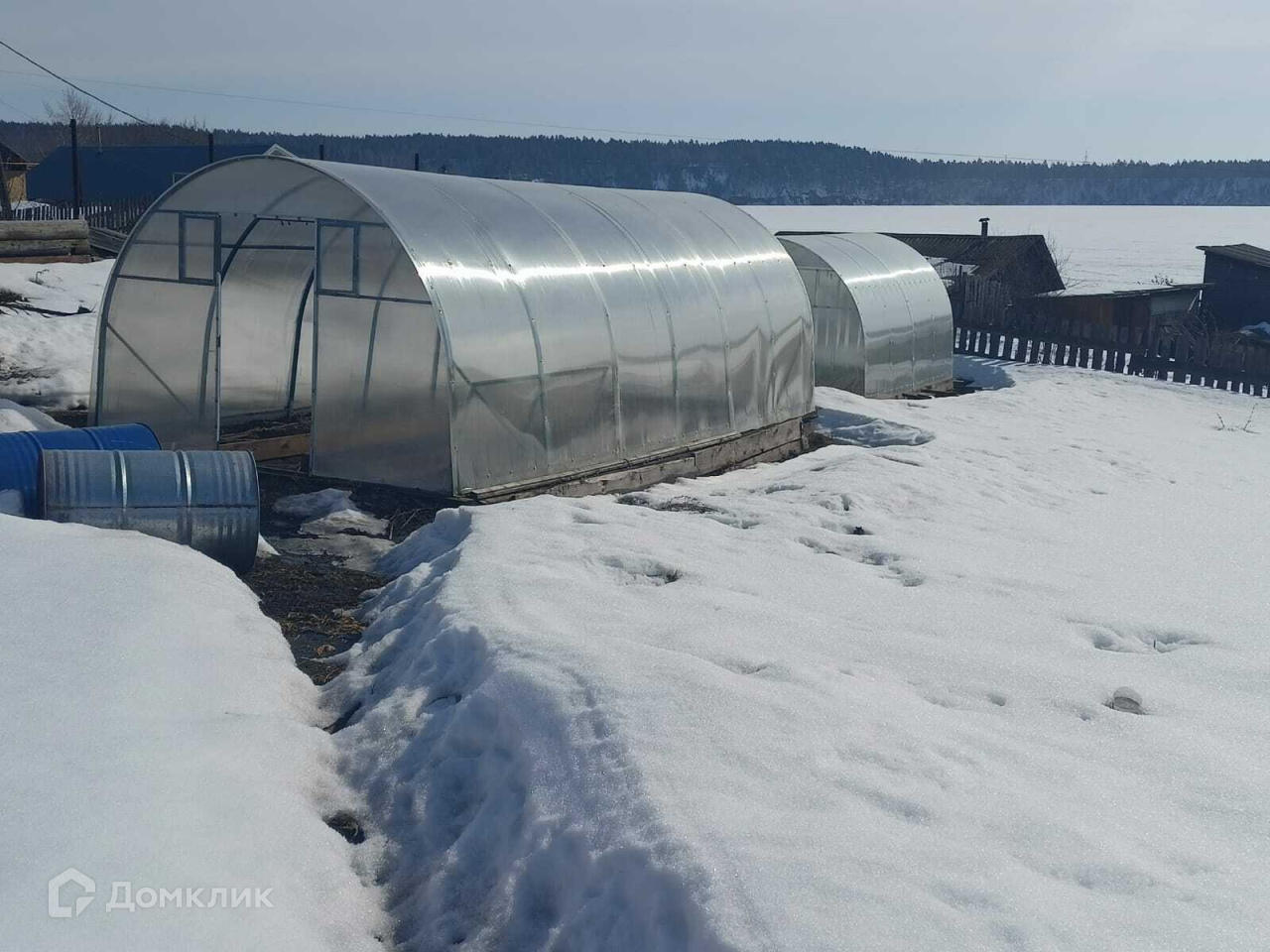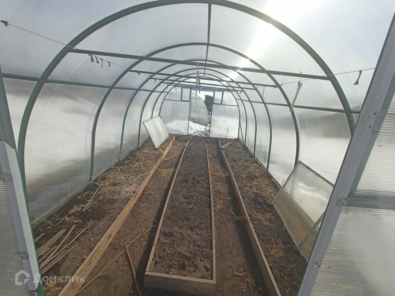 Огород обрабатывается, много посадок деревьев и кустарников, 2 теплицы из поликорбоната.