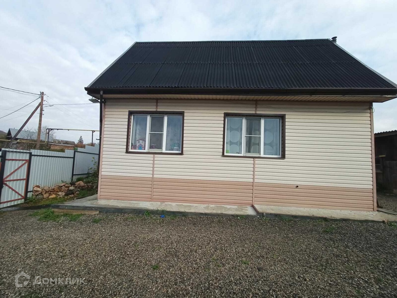 Дом площадью 60 кв м из бревна ,обшитый сайдингом.