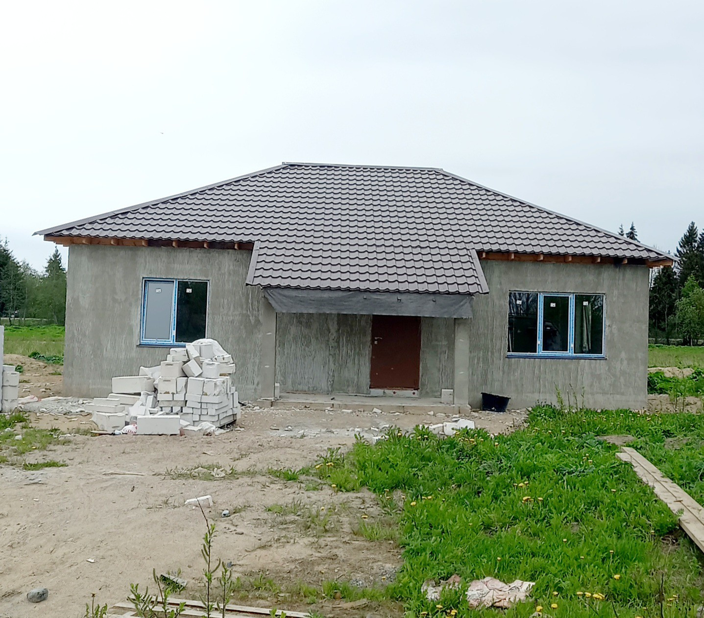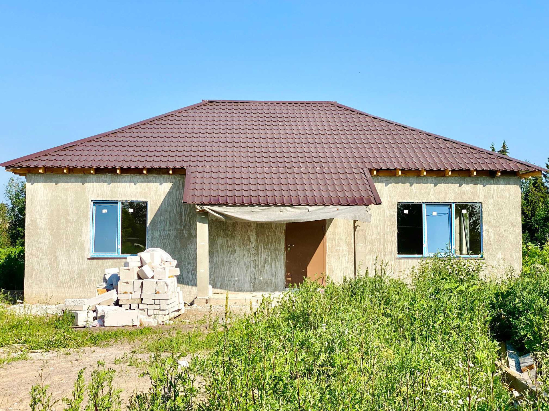 Дом сдается с чистовой отделкой, разводкой всех коммуникаций: стены выровнены и отштукатурены под покраску или обои, плитка на полу и в санузле, разводка электричества, эл-во 15 кВт, тёплый пол по всей площади дома, натяжные потолки. Своя скважина, вода заведена в дом, установлен септик. В стоимость входит наружная отделка дома декоративной штукатуркой (есть возможность выбрать цвет).