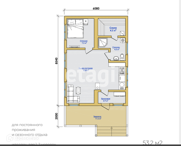 Общая площадь 53.2 м2