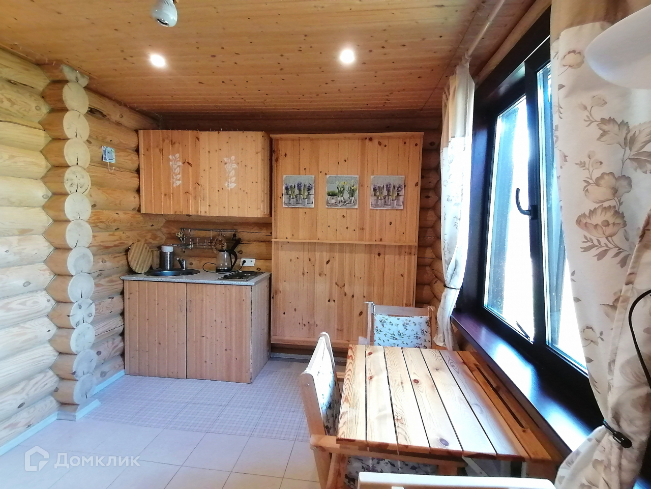 Продаю дом-баню из оцилиндрованного бревна. Очень удачная локация в живописном месте, недалеко от загородного ресторана Лесная Сказка. От города на автомобиле 20-30 минут по новому асфальту. К участку также есть подъезд круглый год, дорогу чистят. Прямо у дома есть пруд. На самом участке расположен небольшой водоём, в котором обитают мальки форели. В дом проведена вода, установлен водонагреватель. Имеется открытая веранда с летней кухней, где расположена печь для приготовления и раковина. В доме сделан отличный свежий ремонт, на полу керамогранит, по всей площади полы с подогревом, санузел раздельный, в кафеле, установлена качественная сантехника. Парилка с дровяной печью.