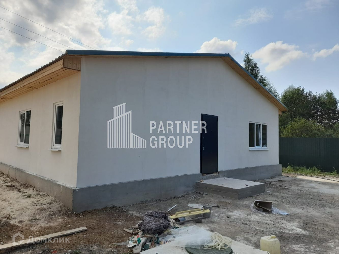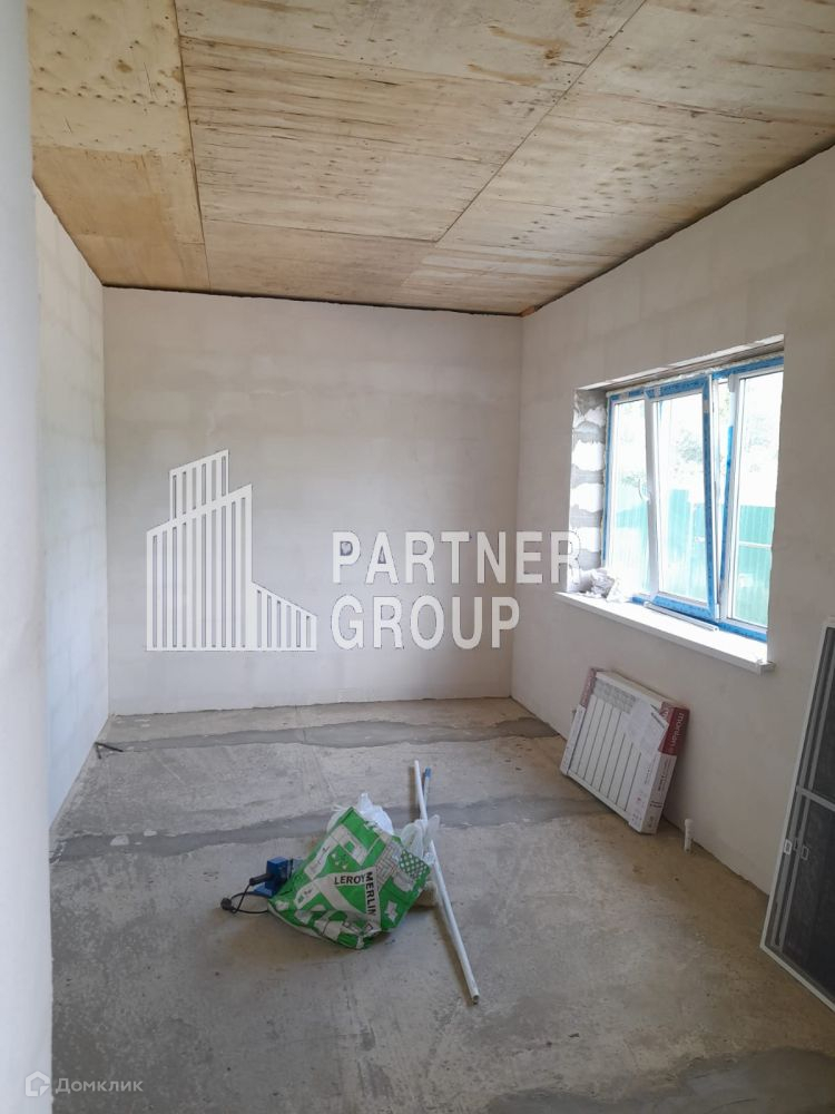 В доме выполнена черновая отделка, а также разводка водоснабжения, водоотведения и электричества. Установлено отопление с биметаллическими батареями и электрическим котлом. В доме есть три комнаты, большая кухня-гостиная и санузел. Газ и водопровод подведены к границе участка.