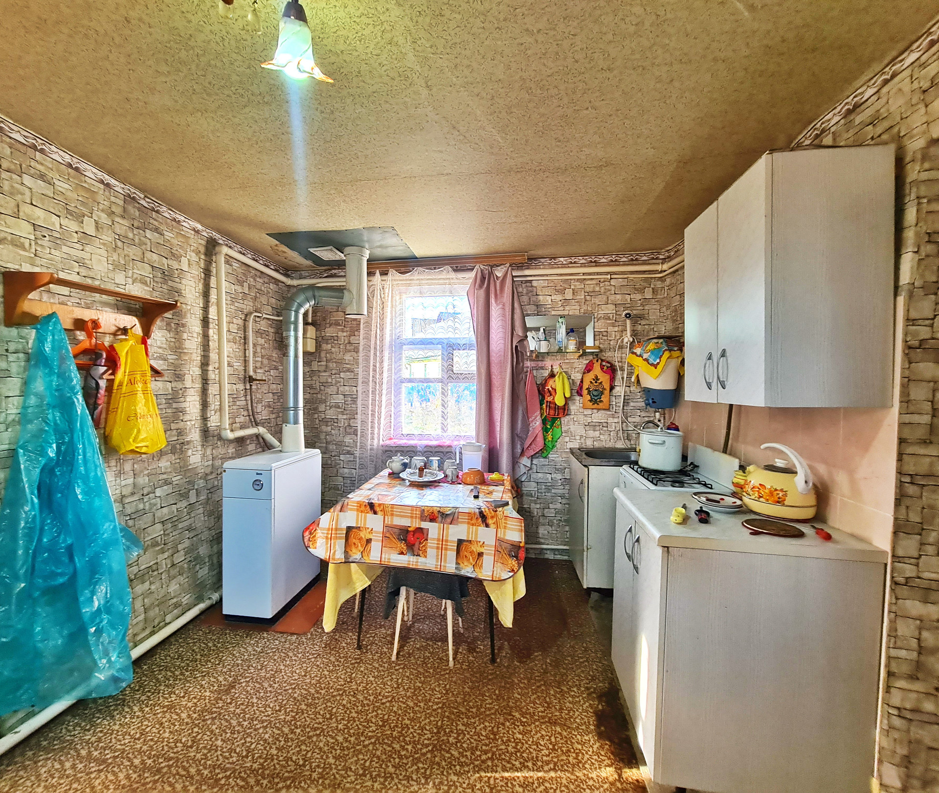 2.    Установлен новый котел АОГВ и система отопления, центральное водоснабжение, СВЕТ, канализация заведены в дом и подключены.