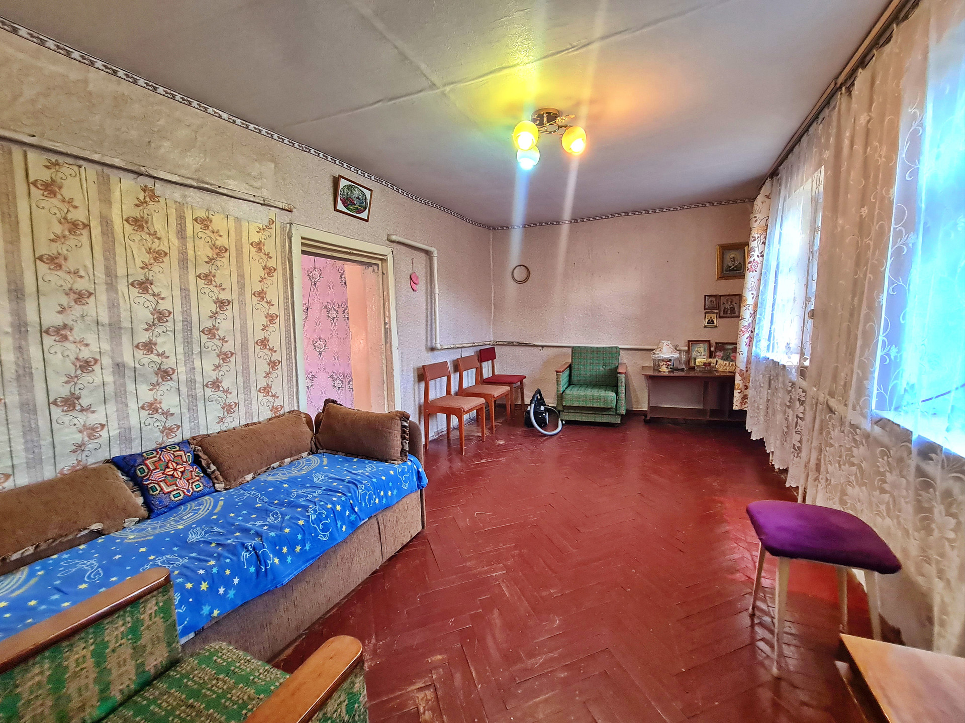 1.    Дом крепкий кирпичный, удобно расположен на участке, имеет два входа, 4 комнаты, просторную кухню.