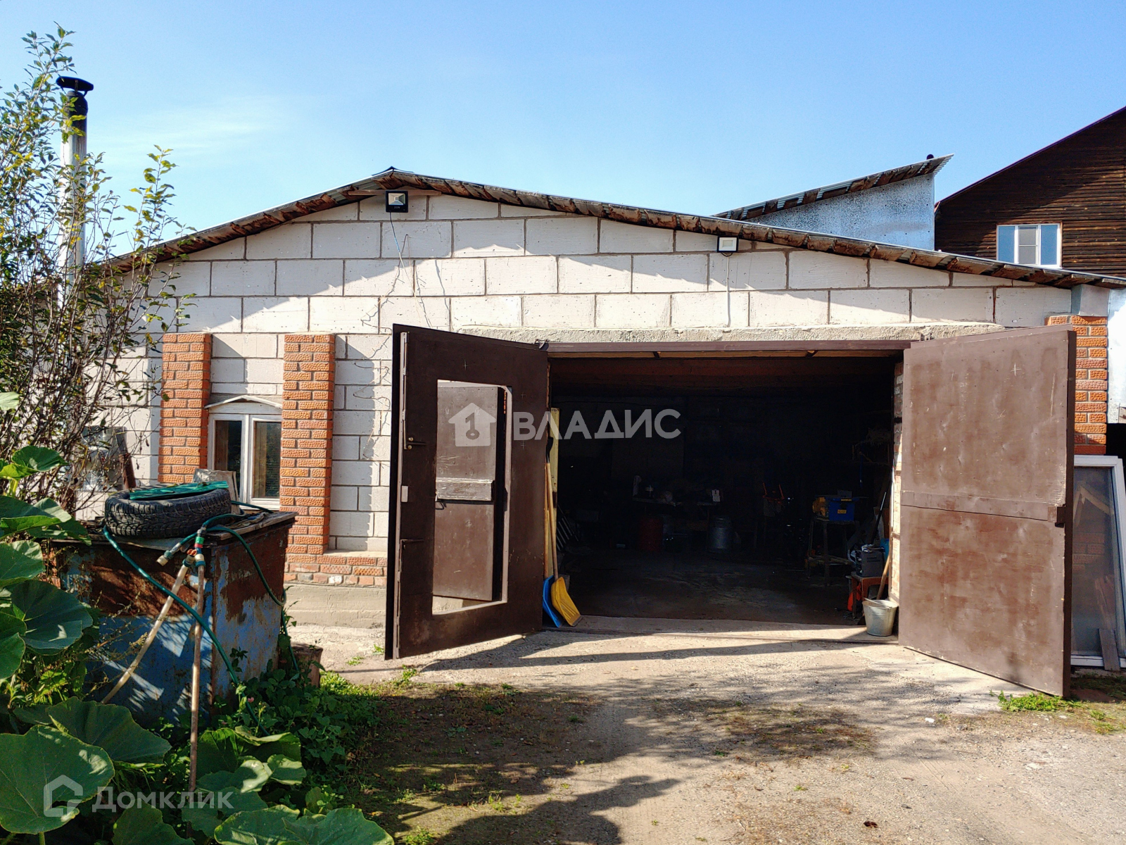На участке гараж с подсобными помещениями и баней общей площадью около 130 кв.м