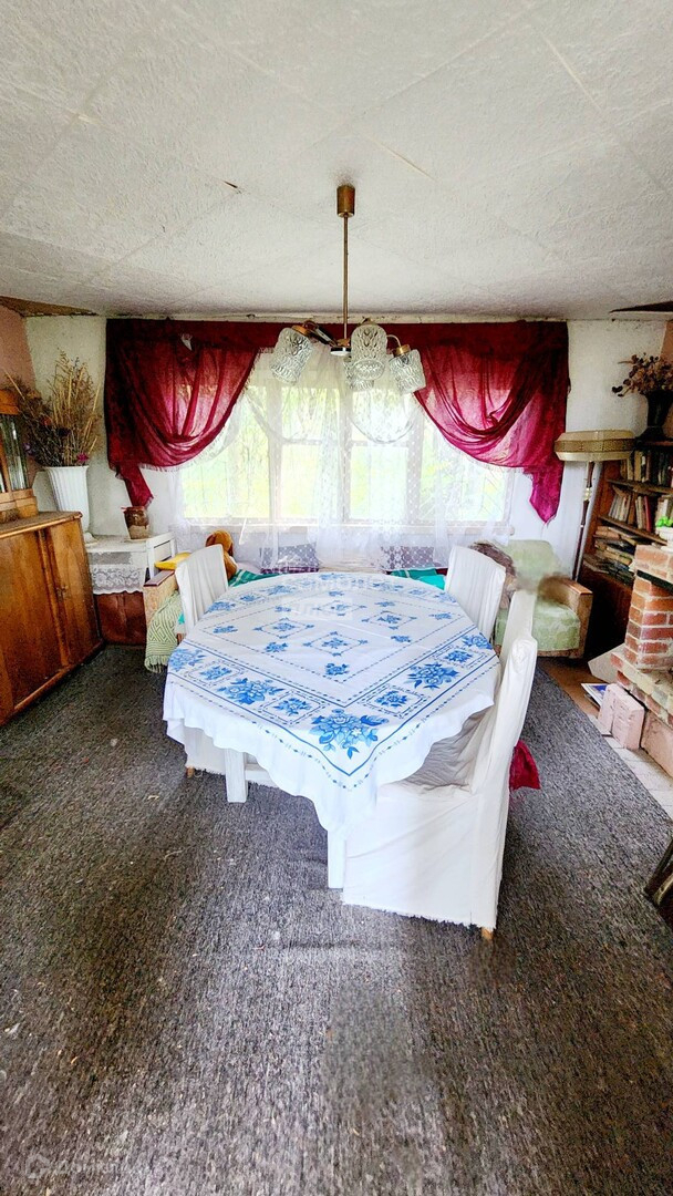 Дом деревянный, размером 6*6*3,5., двухэтажный, большая комната с печкой и каминная на первом этаже, 2 спальни на втором.