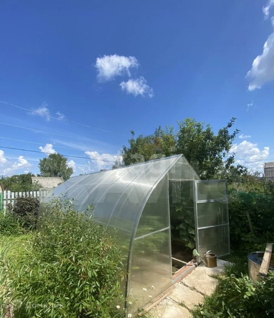 Участок 7 соток правильной формы. На участке две теплицы, многолетние посадки, множество цветов. Участок огорожен от дороги новым железным забором.