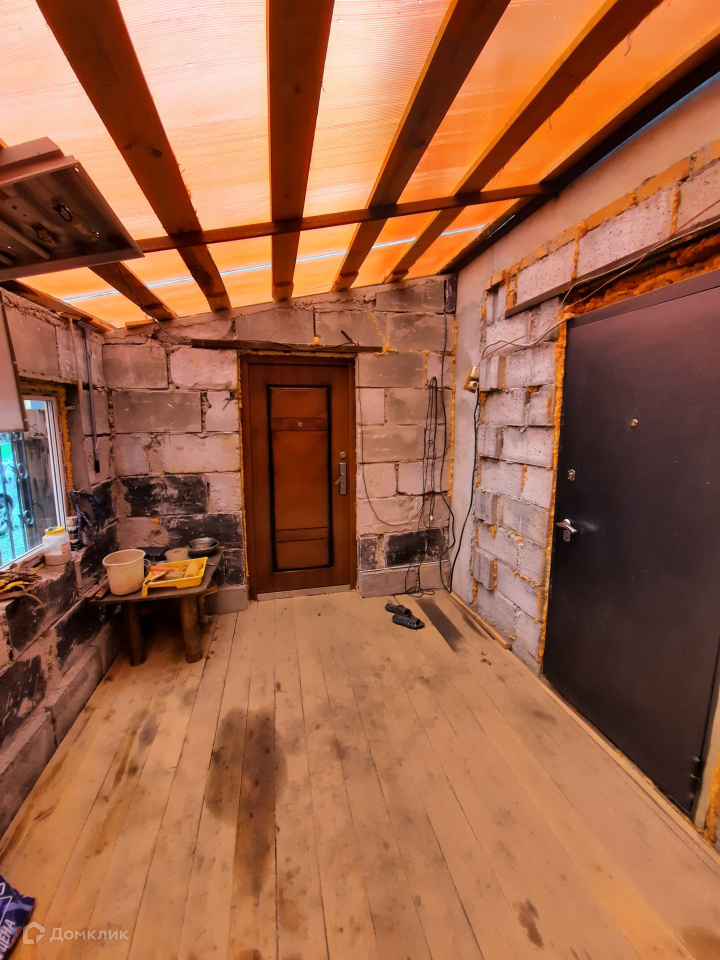 Дом пригоден для круглогодичного проживания. Построен из пеноблоков на бетонном фундаменте, межэтажное перекрытие: на первом этаже ж/б плиты, на втором - дерево. На первом этаже комната и гостиная совмещенная с кухней. Имеется камин. На второй этаж ведет замечательная деревянная лестница, где расположены спальные комнаты. Отопление печное и электрическое. Скважина с чистейшей водой в доме, канализация автономная. На земельном участке, площадью 9,5 соток, расположены большой гараж – 42 кв. м. и баня – 24 кв. м.
