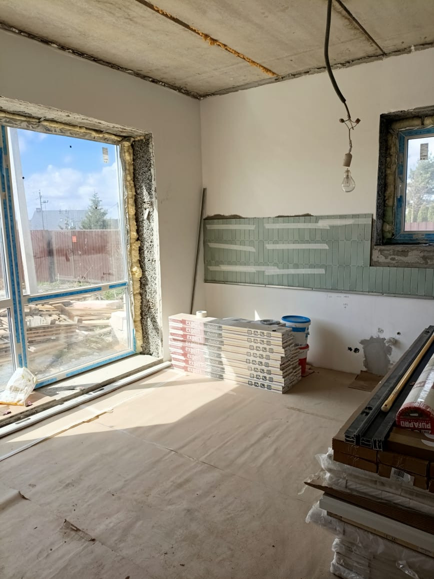 Дом будет сдан с чистовой отделкой - она на завершающей стадии - осталось установить двери, выключатели, сантехнику, и натяжные потолки!