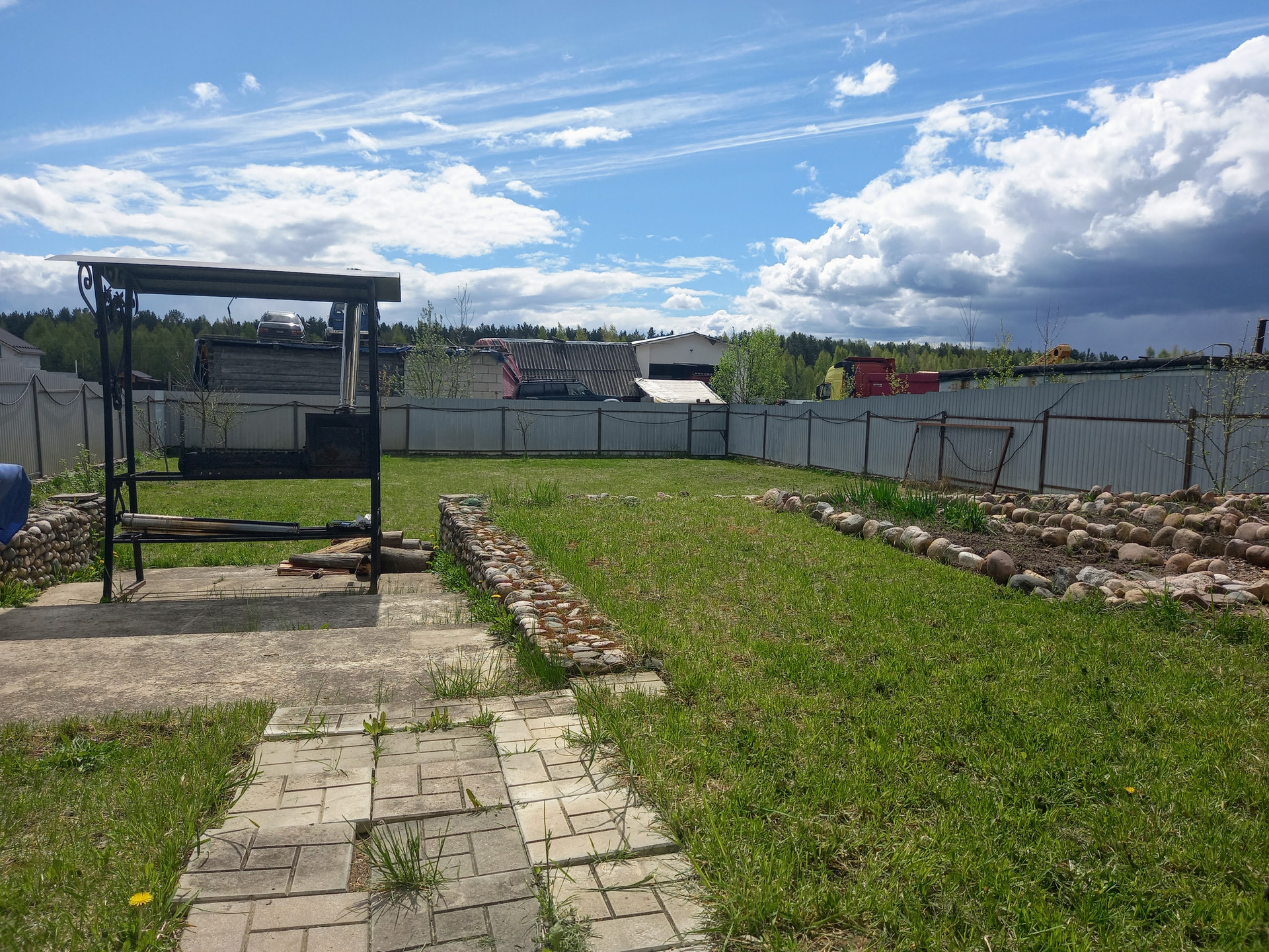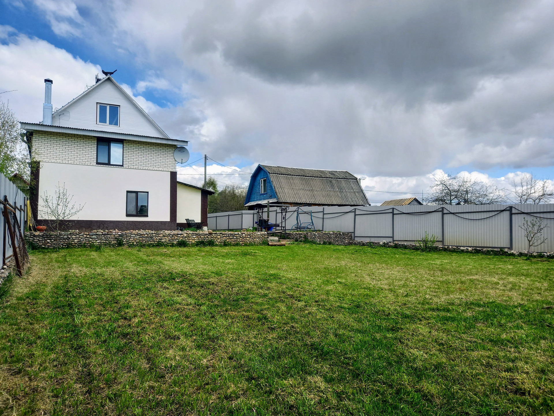 Территория благоустроена. По периметру высажены плодовые деревья. Организована мангальная зона.