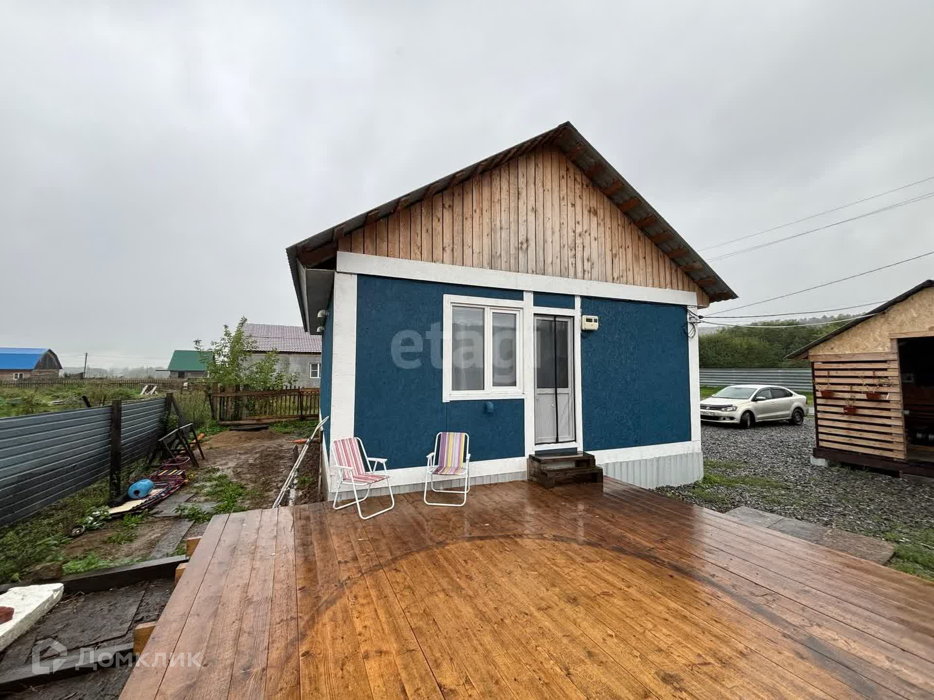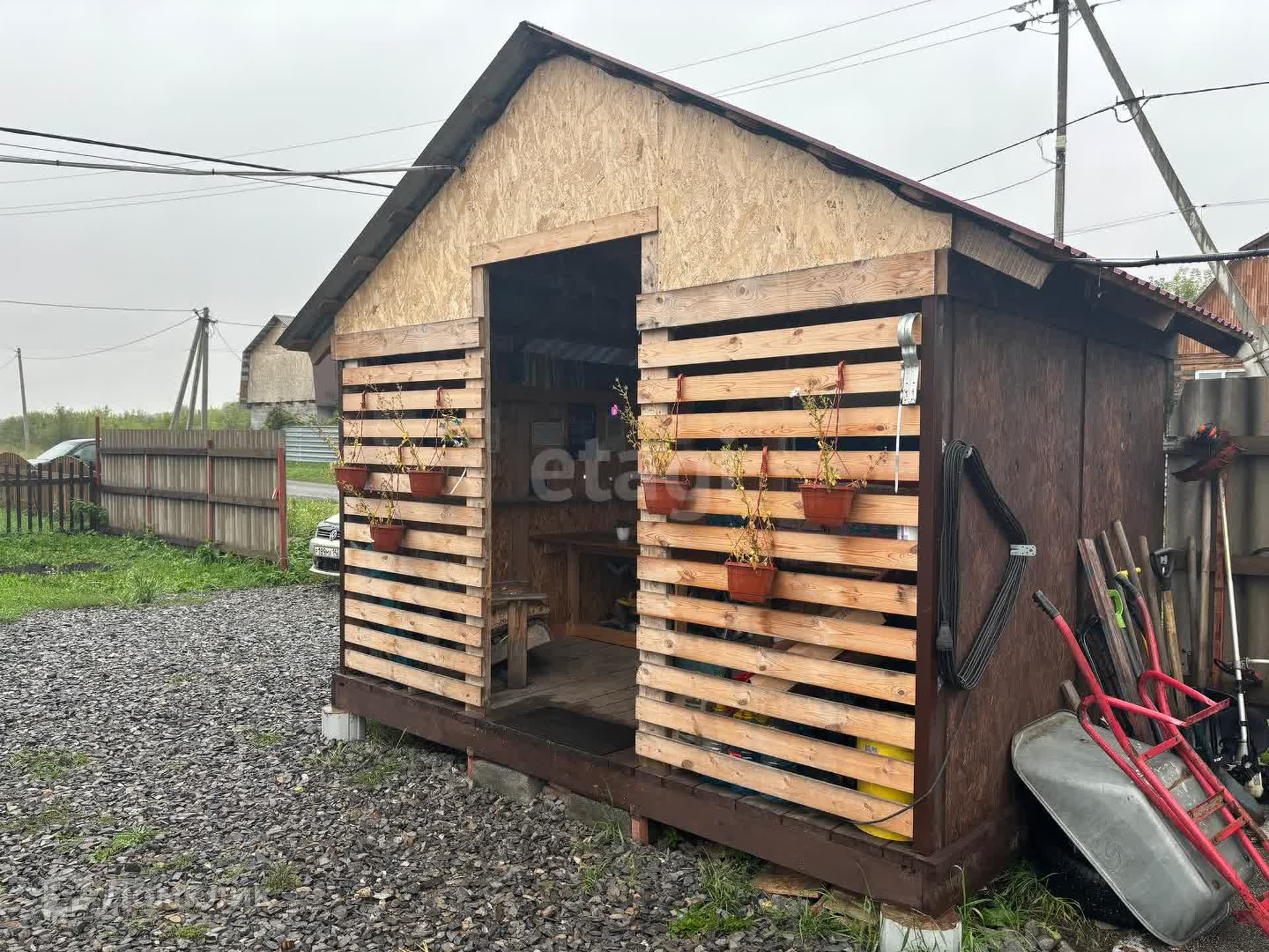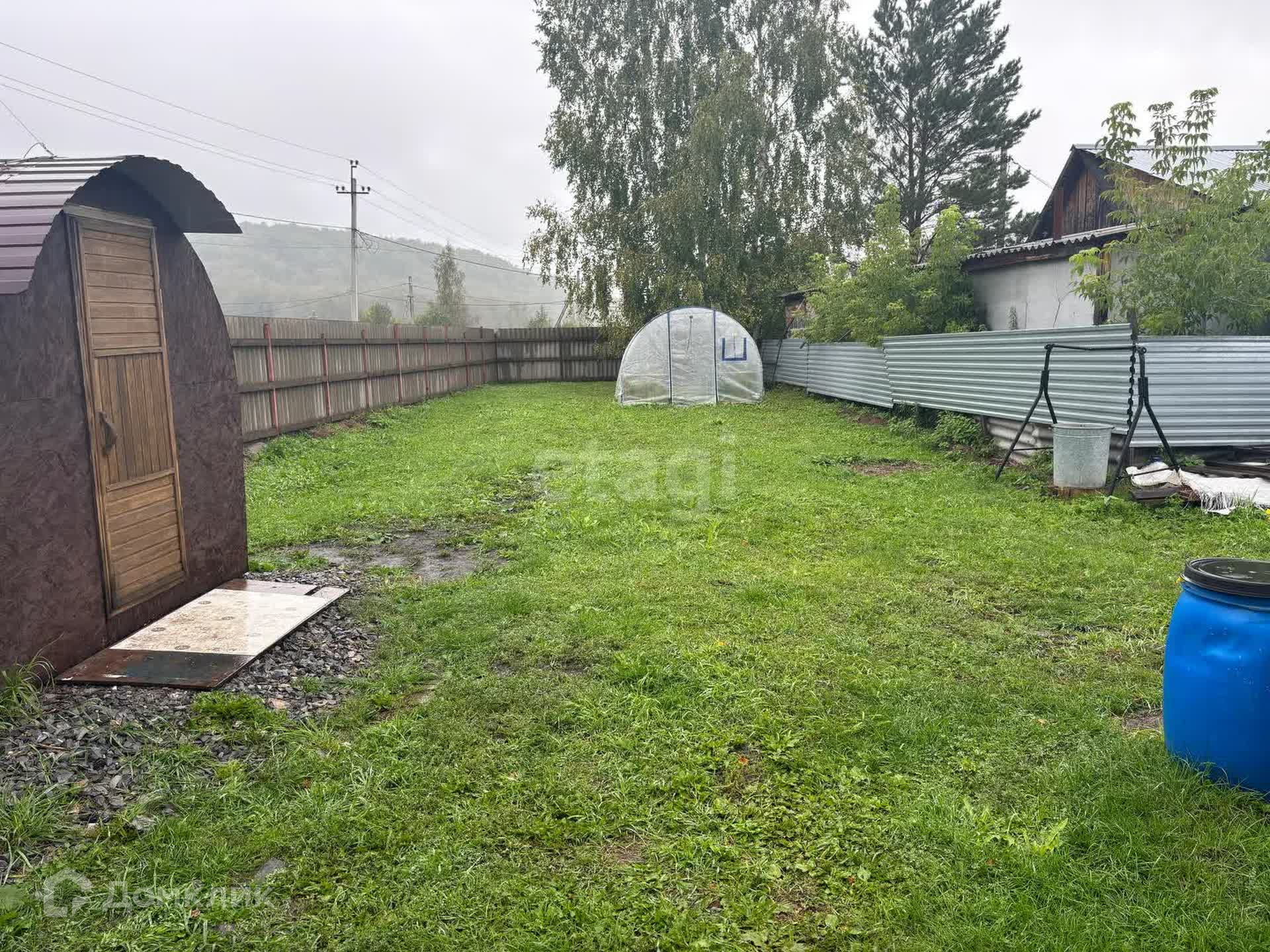 Помимо дома на участке расположены беседка, баня и теплица. Из дома есть второй выход на террасу с бассейном. Бассейн сейчас разобран на сезонное хранение.