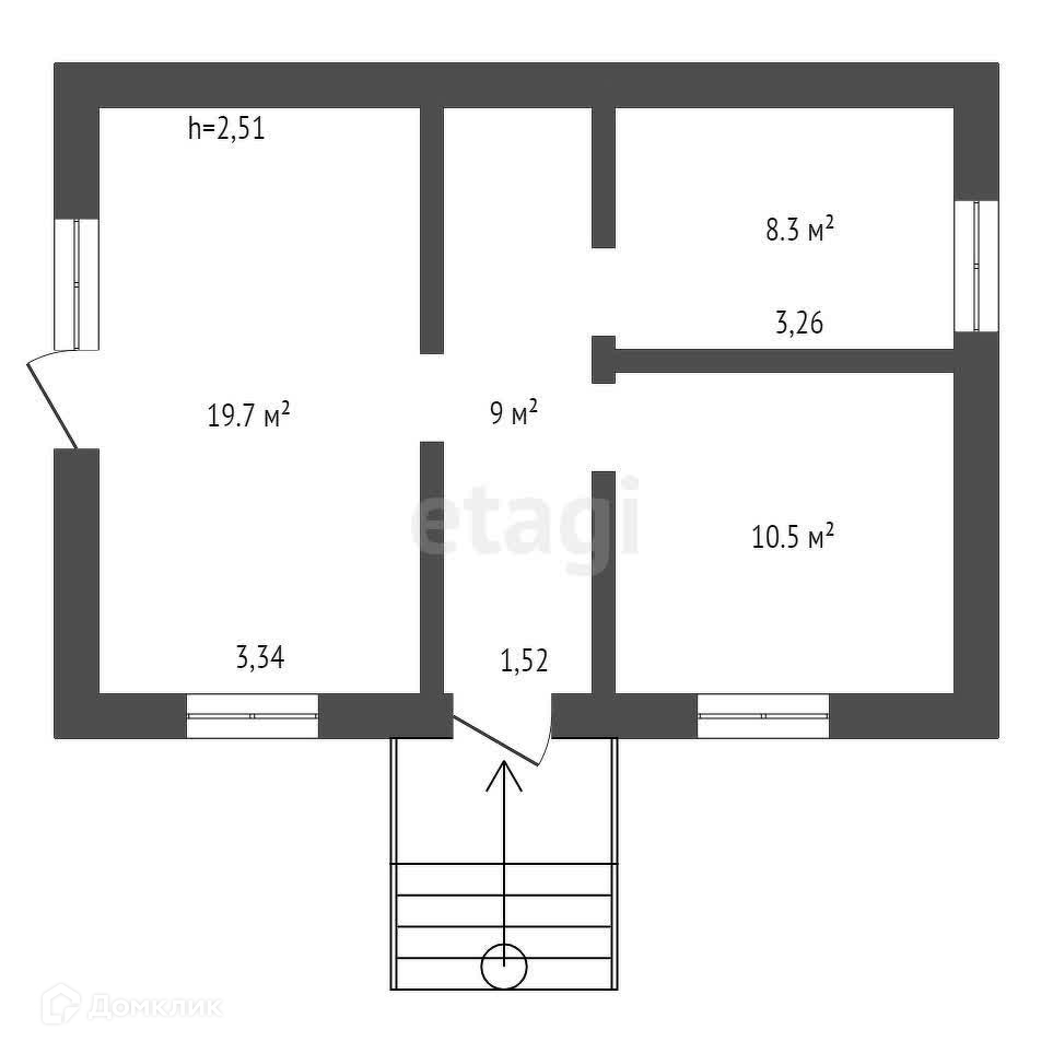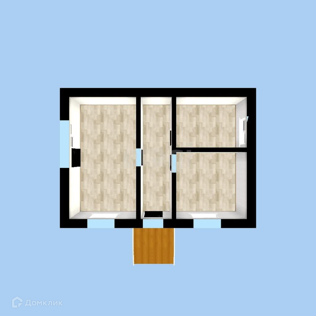 В доме две изолированные комнаты, кухня-студия, совмещенный санузел и прихожая.