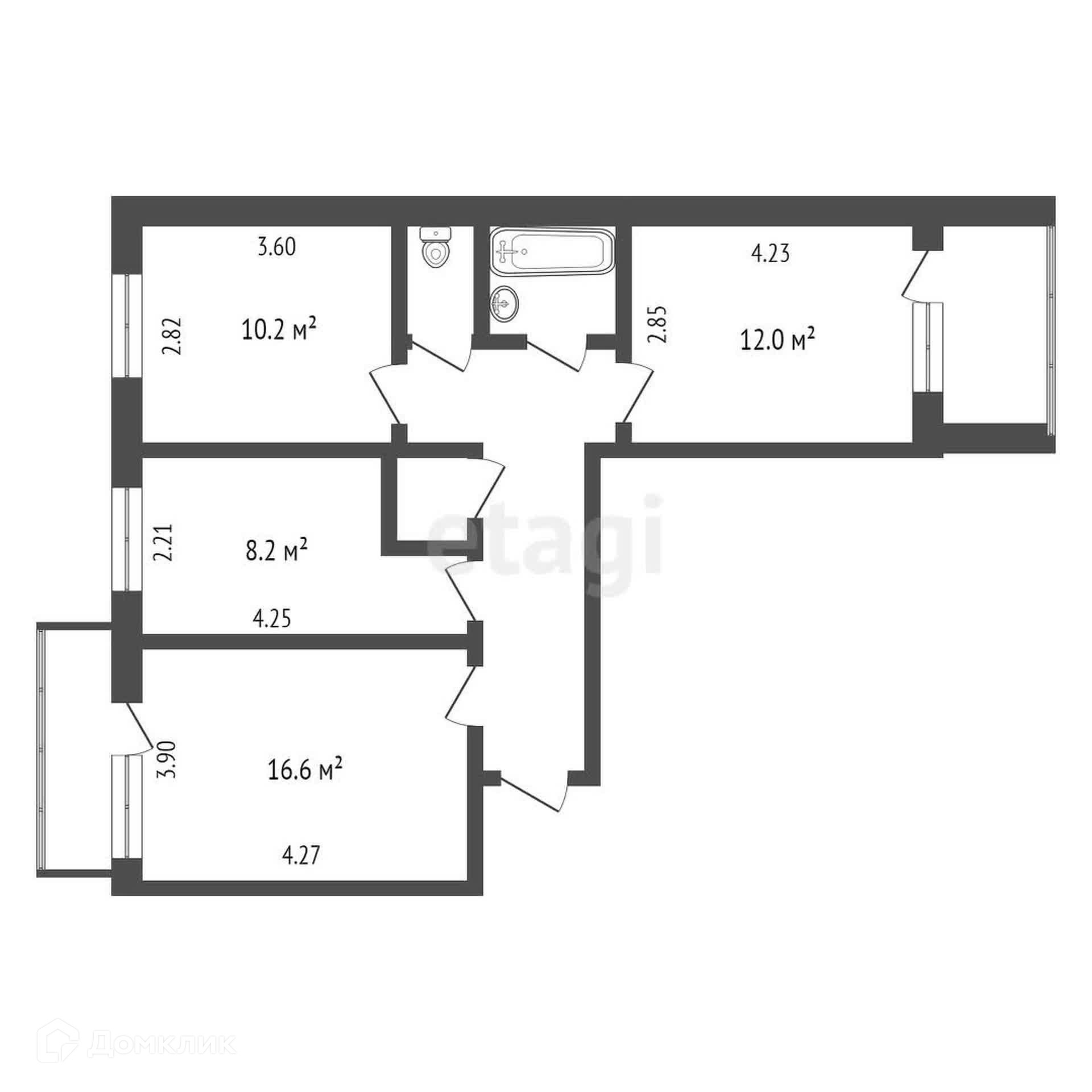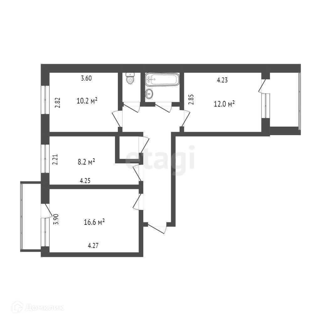 Продается 3-х комнатная квартира площадью 62,1кв.м в 5-ти этажном доме на 4-м этаже.