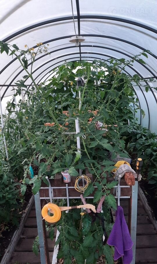 Скважина, отопление газовое. Откатные ворота, забор профнастил. На участке имеются насаждения, деревья, теплица 6 м.