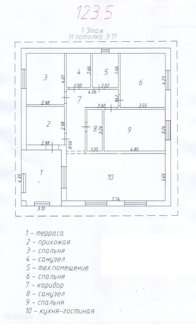 Общая площадь 123.5 м2