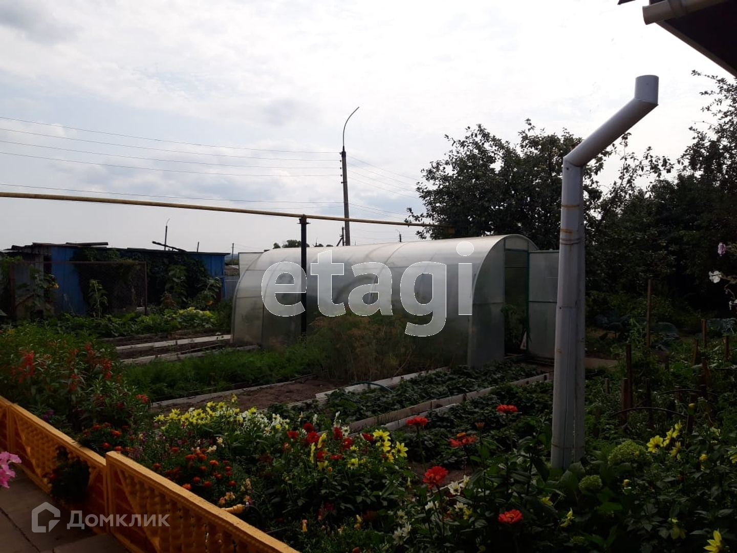 На участке имеются баня, гараж, беседка, большие хозяйственные постройки и теплицы.