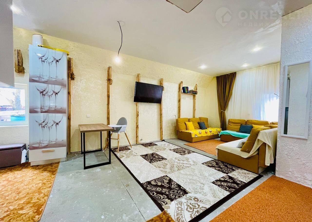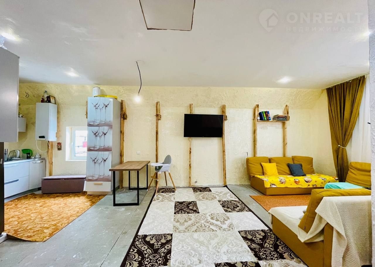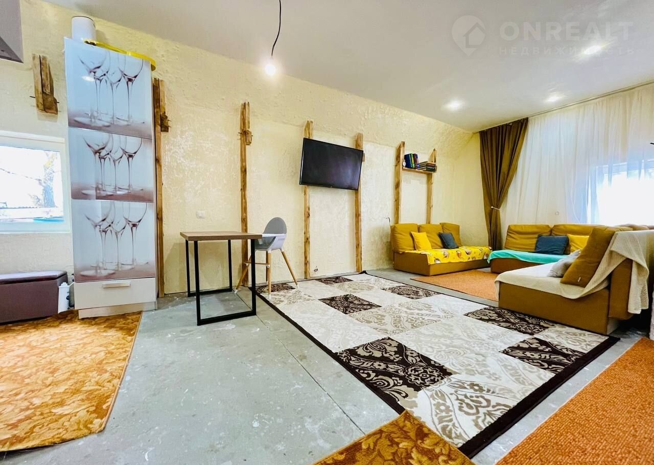 В доме расположено 2 просторные комнаты, общей площадью 75 кв.м. Жилая площадь составляет 50 кв.м, а на кухне имеется 43 кв.м. Два этажа дома обеспечивают удобство и простор, а качественные материалы строения (сайдинг-газоблоки, профнастил на крыше) гарантируют долговечность и надежность.