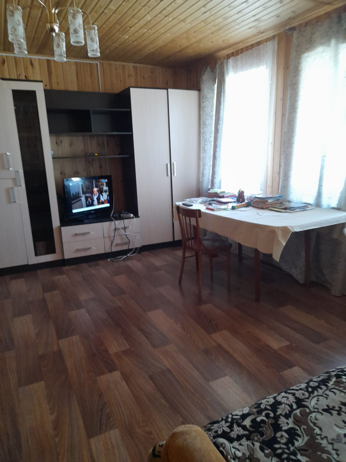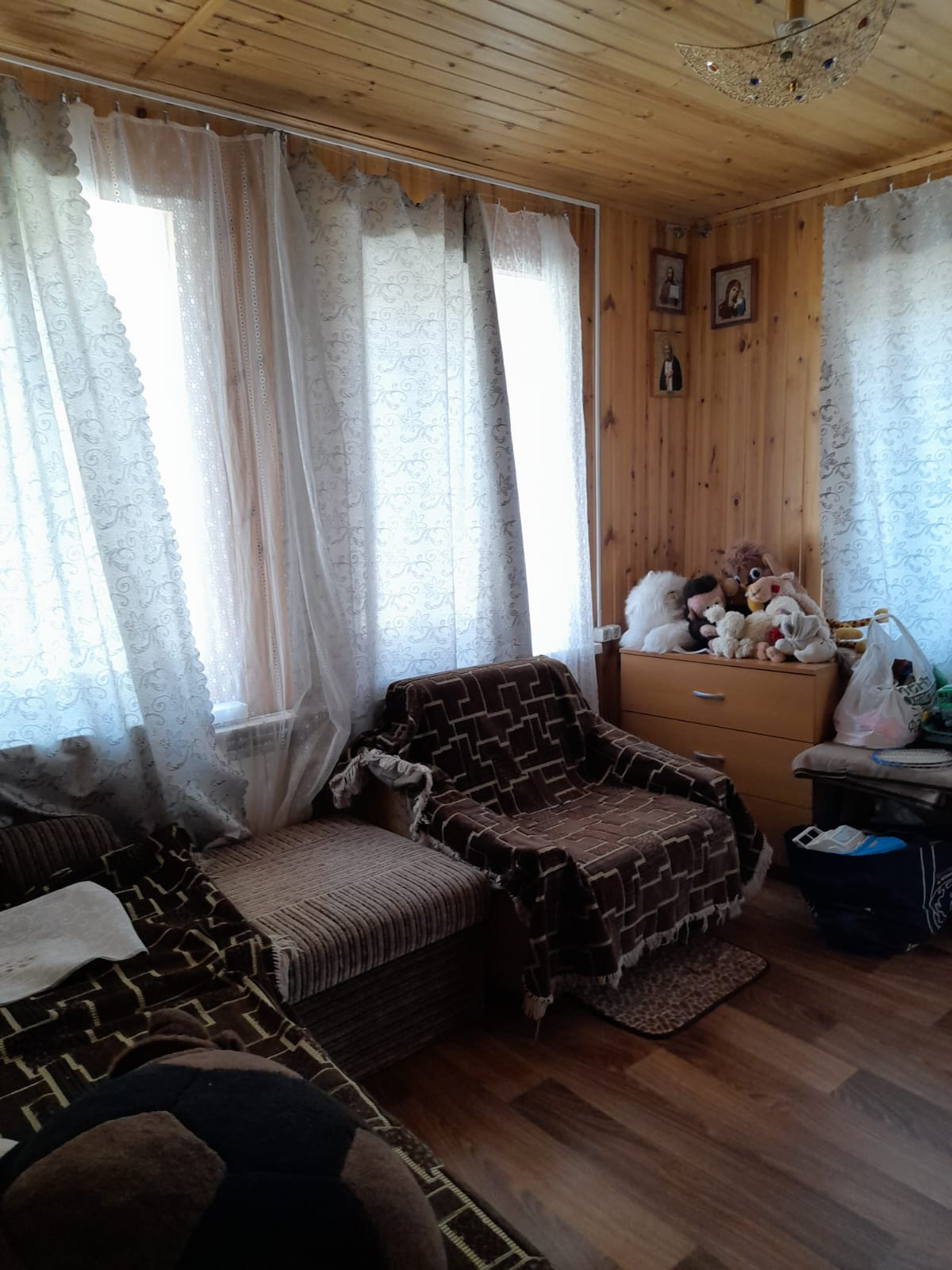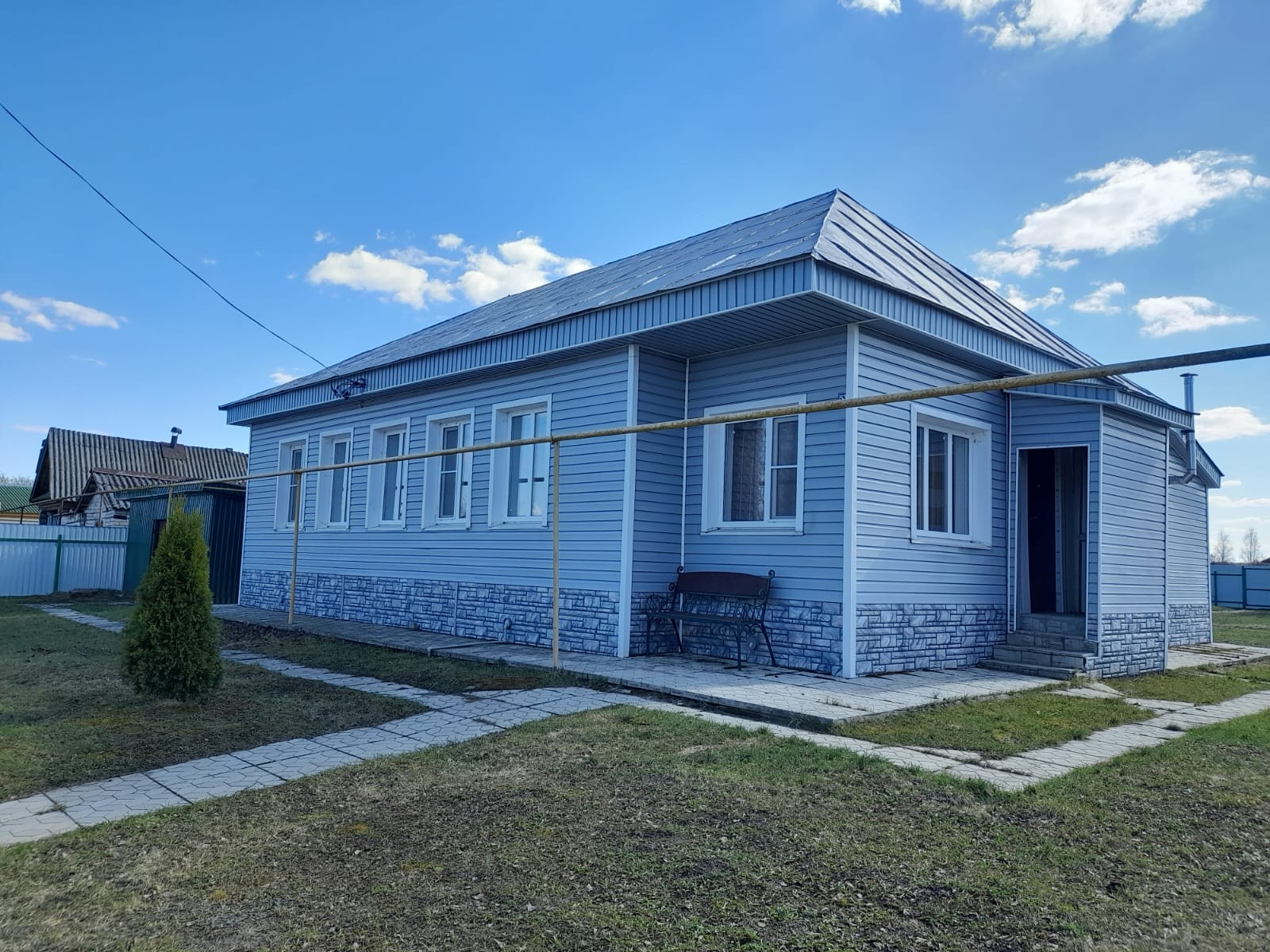 Одноэтажный кирпичный дом 100 кв.м, участок 34 сотки, огорожено 12.5 соток, все удобства, вода, газ, эл-во, канализация, спутниковое ТВ.