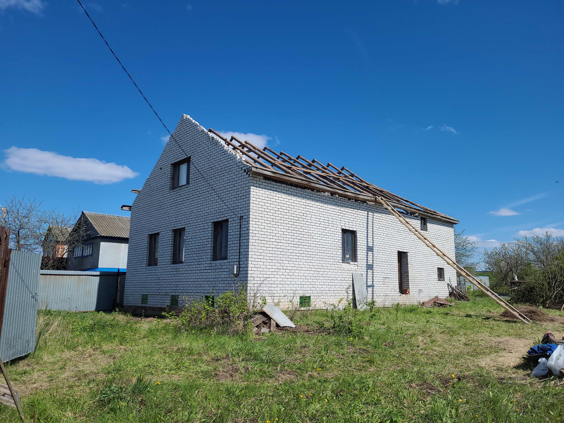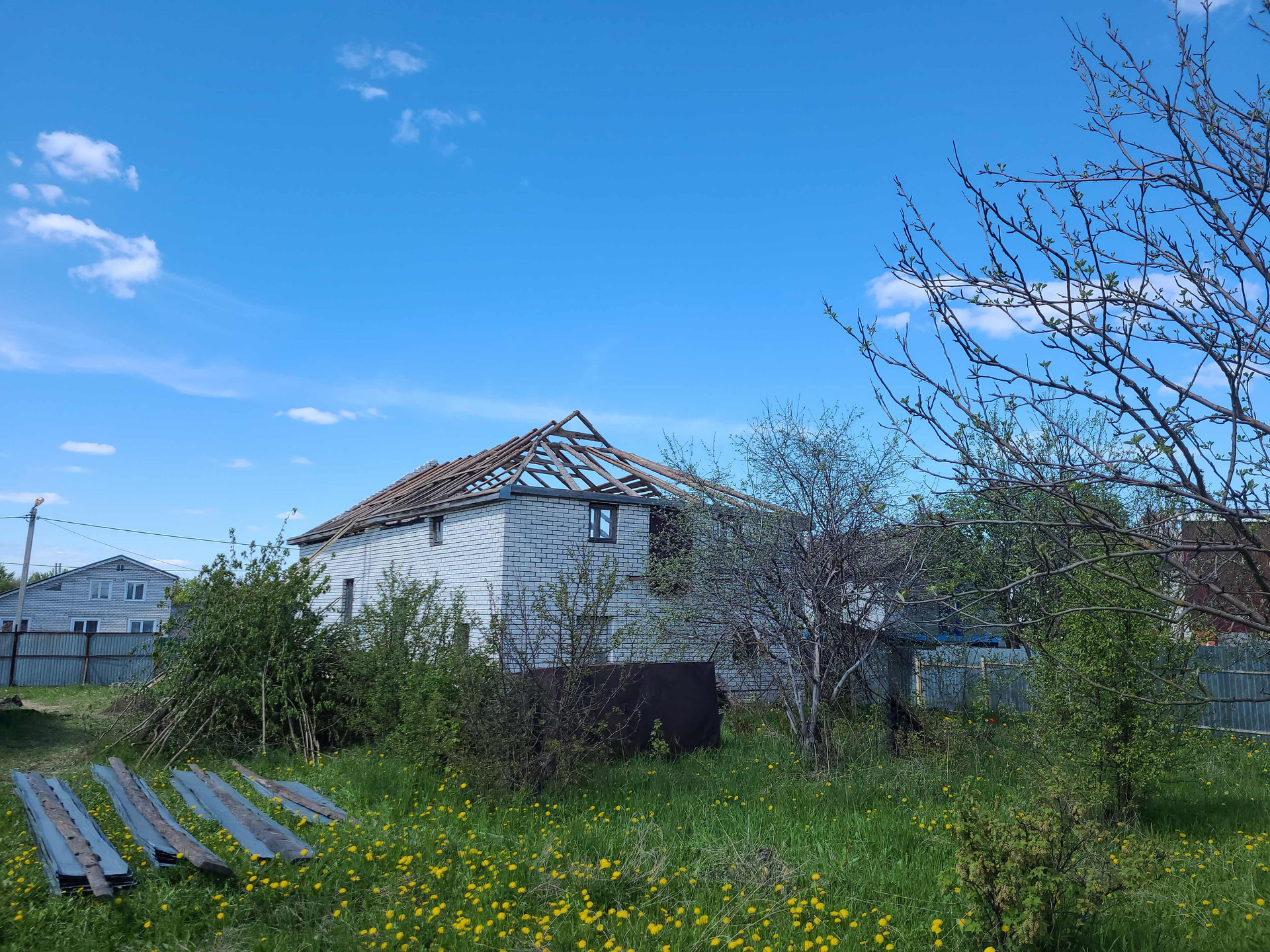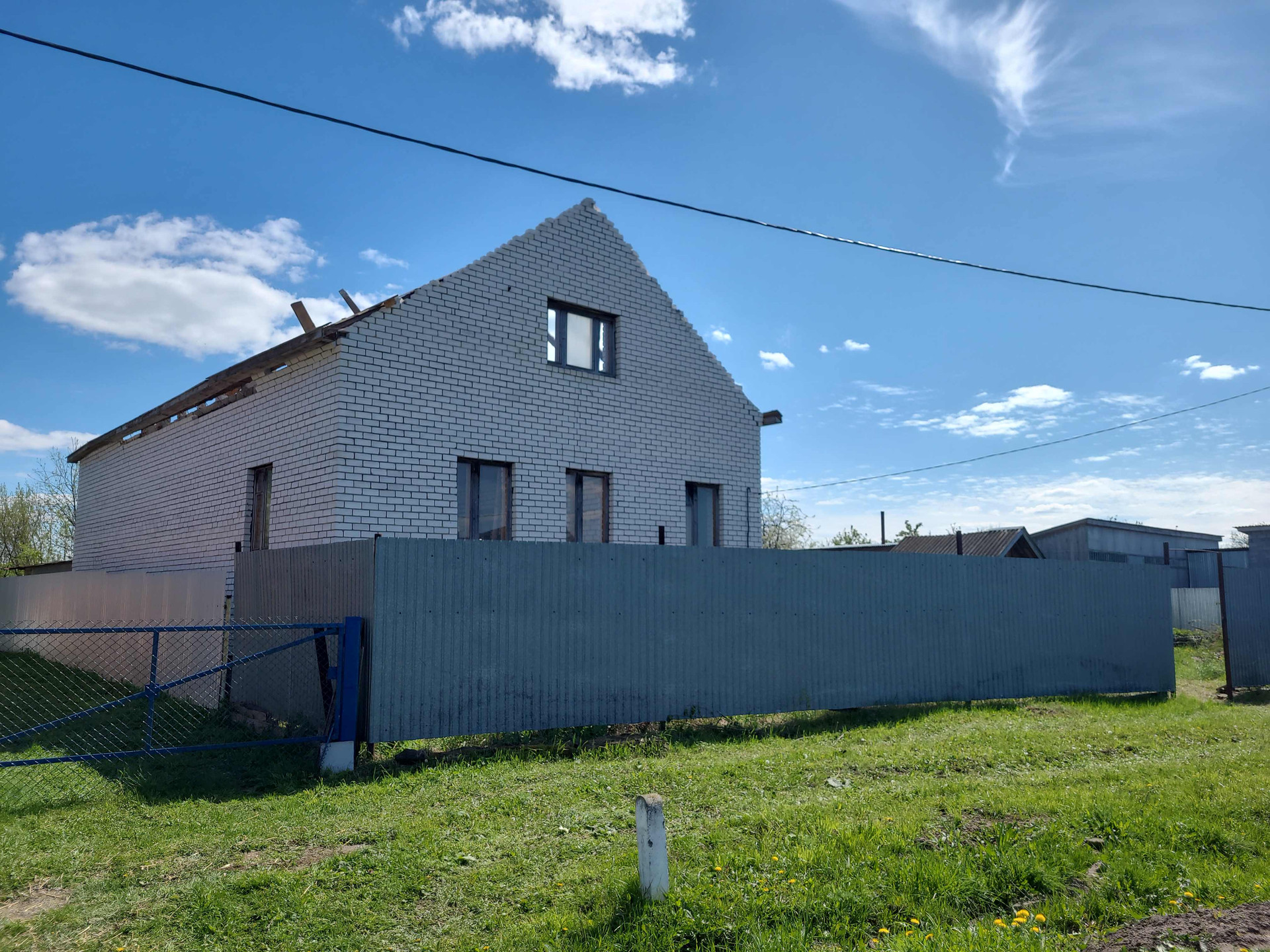 Продаётся двухэтажный кирпичный дом без отделки в деревне Мурзаково. Дом нуждается в ремонте, на данный момент  крыша частично разобрана. В доме скважина. Подведено электричество, газ по границе участка. Земля 29 соток, плодовые деревья..