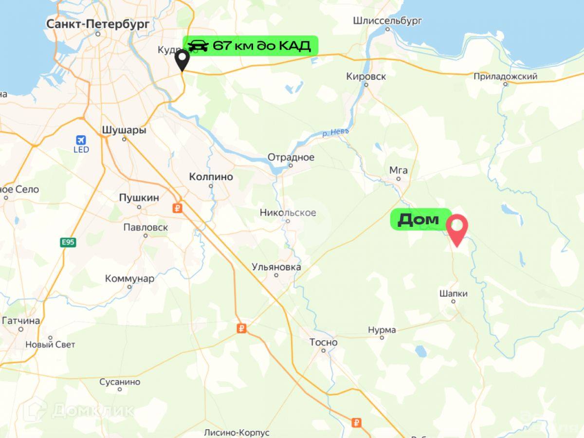 На автомобиле менее 60 км до КАД. На выбор несколько маршрутов (Московское шоссе, Скоростная трасса М-11, Мурманское шоссе или дорога через г. Отрадное). Всегда есть варианты добраться без пробок.