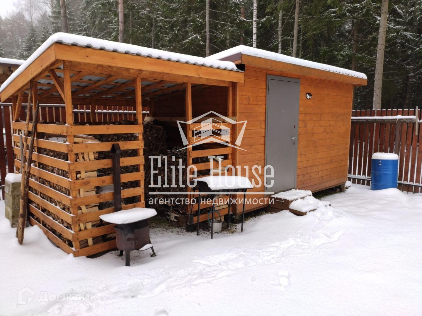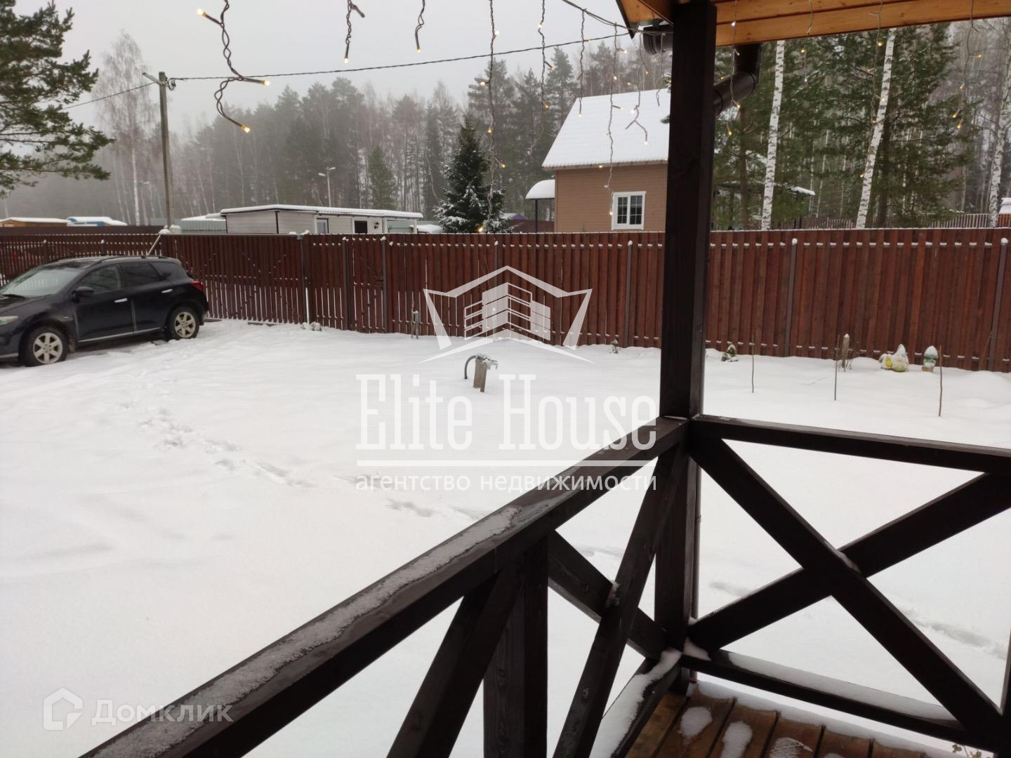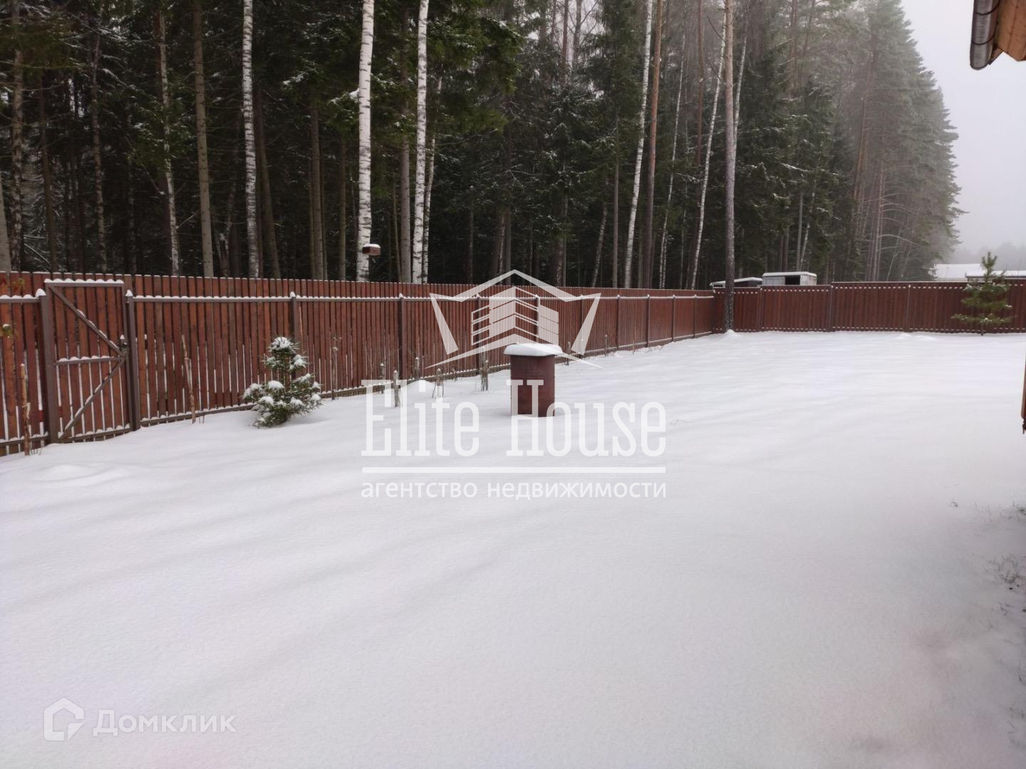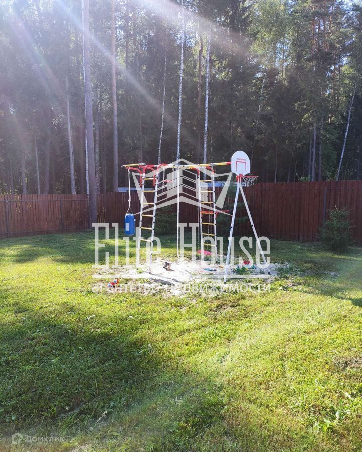 Общая территория СНТ огорожена забором из профлиста, имеет 2 въезда, один из которых имеет электрические откатные ворота. Дом расположен на участке правильной прямоугольной формы, площадью 10 соток (смежный с лесом, в котором можно собирать грибы и ягоды), огорожен забором из деревянной доски. Участок ровный, ухоженный. Есть благоустроенная детская площадка для игр и спортивных развлечений. Также, установлена бытовка для хранения садового инвентаря.