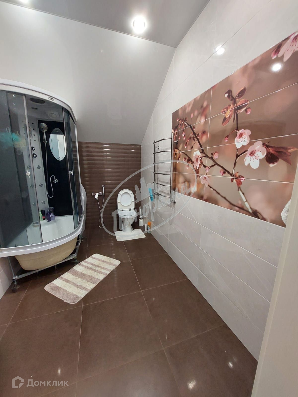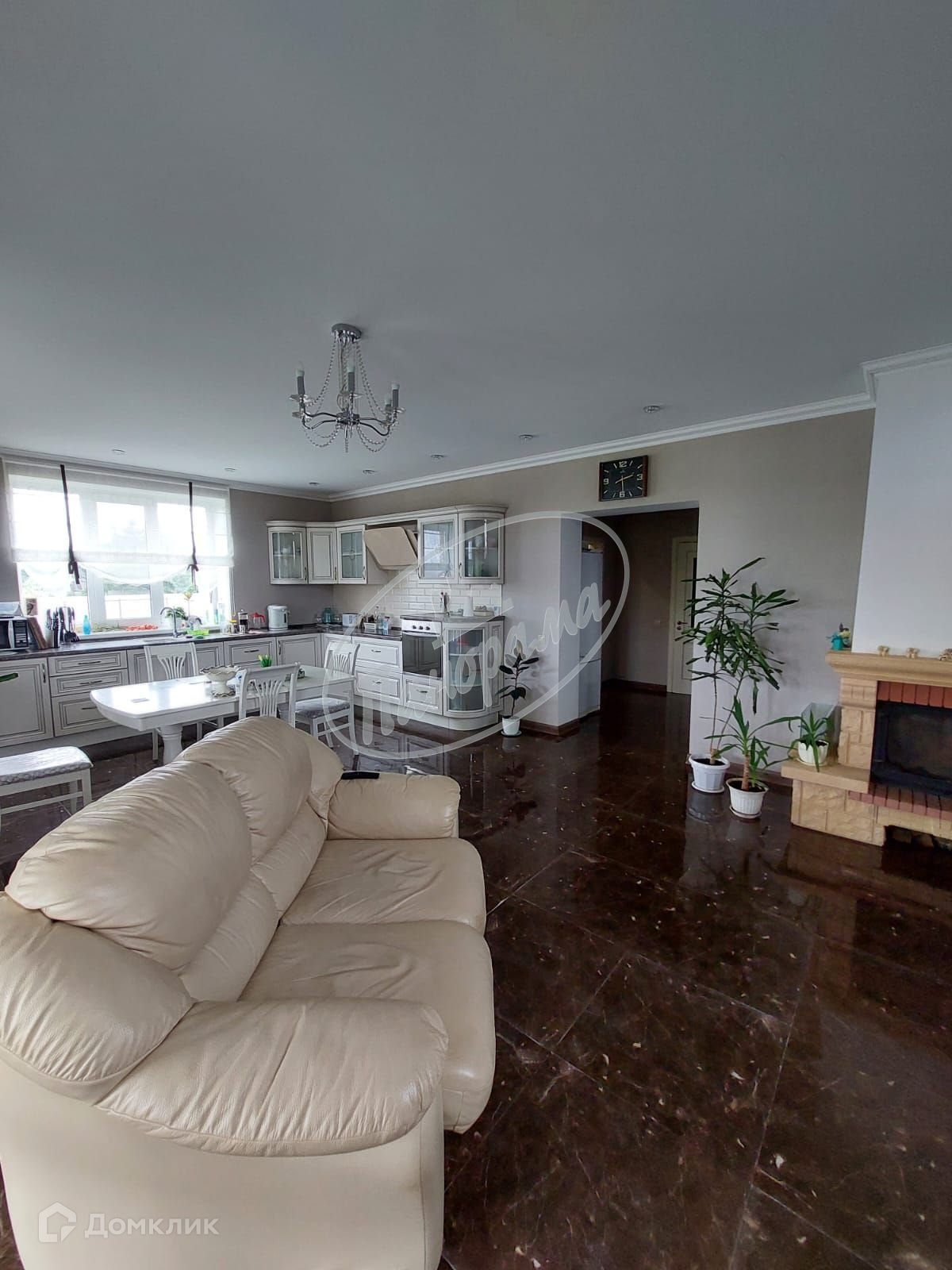Стены сделаны из высококачественного газоблока 300, облицованы кирпичом (цвет персик фирмы TEREX). Крыша – металлочерепица. Окна ПВХ(Schuco), отличного качества, трехкамерный стеклопакет, двухцветные. В доме на первом этаже прихожая, санузел, гостевая комната, огромная гостиная с камином, солнечная кухня - столовая. Полы – плитка, в комнатах ламинат. На втором этаже три комнаты, санузел, гардеробная. В доме сделано отопление – стоит электрический котел. На первом этаже по всему периметру теплые полы, также на первом этаже установлены батареи, на втором этаже – батареи. Горячая вода бойлер -160 л .