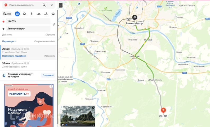 Расстояние между городом Калуги и деревней 22 км.(на машине 26 минут пути).