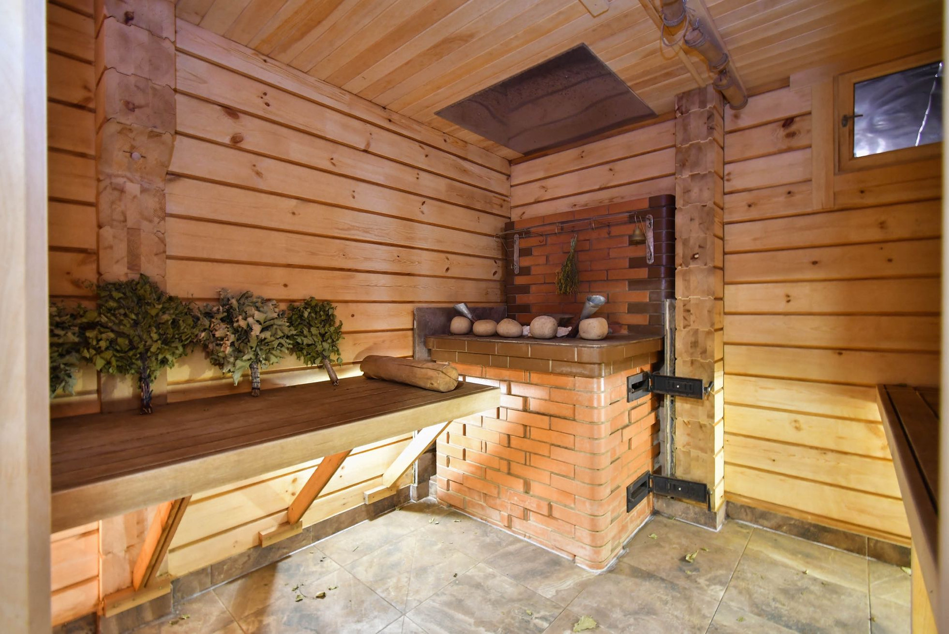 На первом этаже располагается  просторная гостиная кухня 30 М2 . Баня - построенная по всем правилам , с большой кирпичной печью 2/2 с загрузкой камней в два уровня 350 кг. В мойке пол с подогревом .