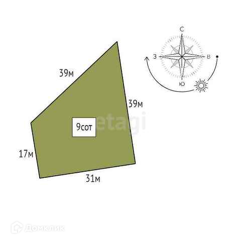 Площадь участка 9 сот.