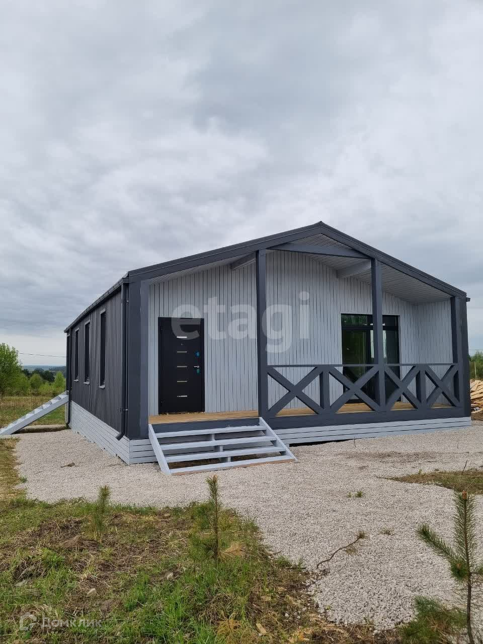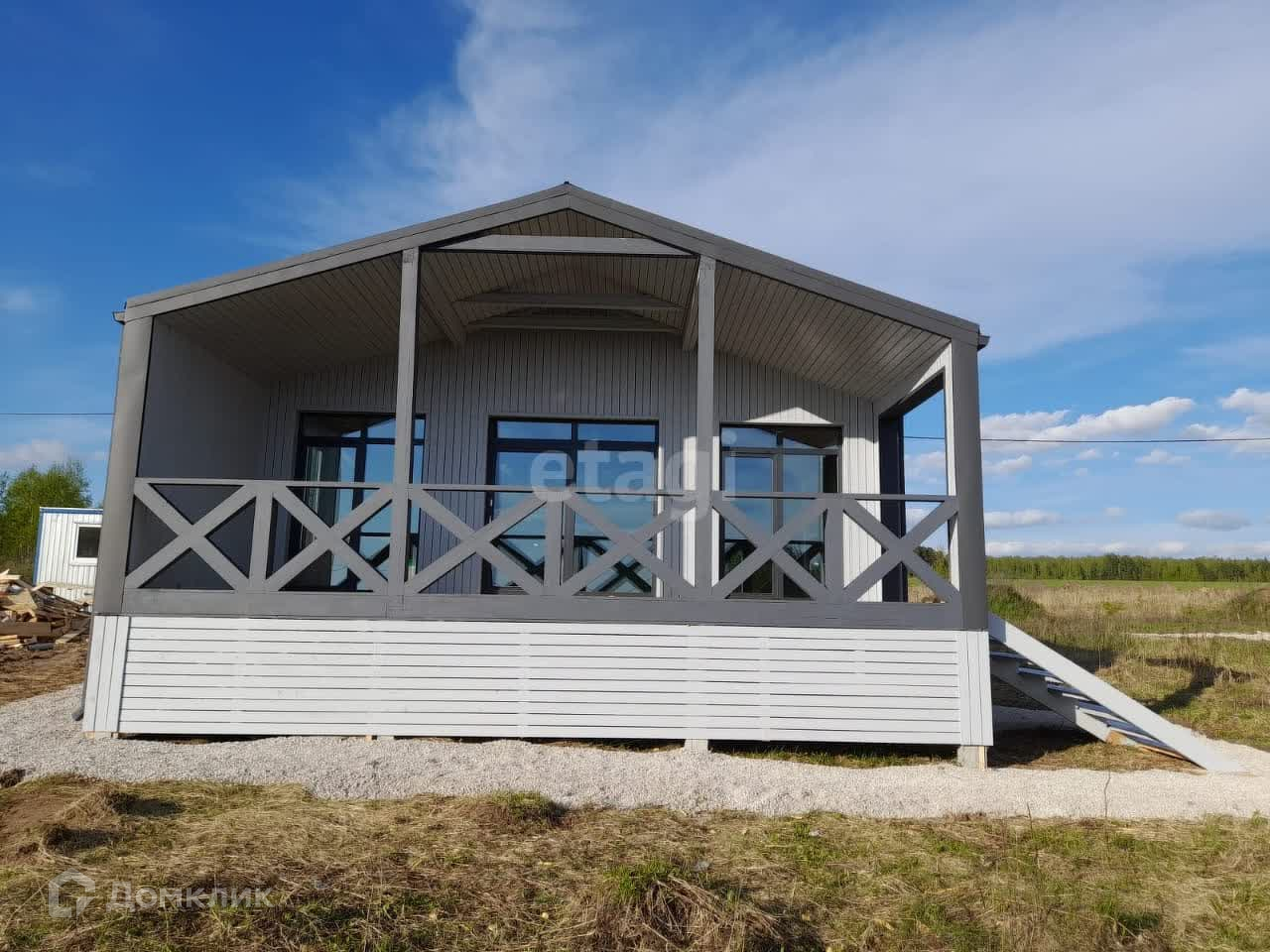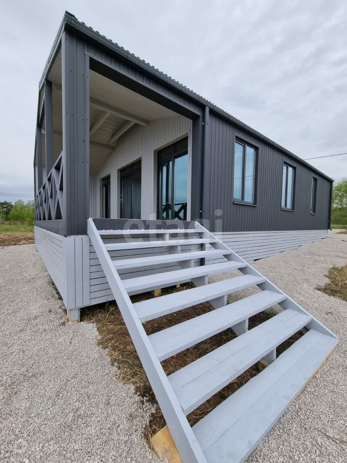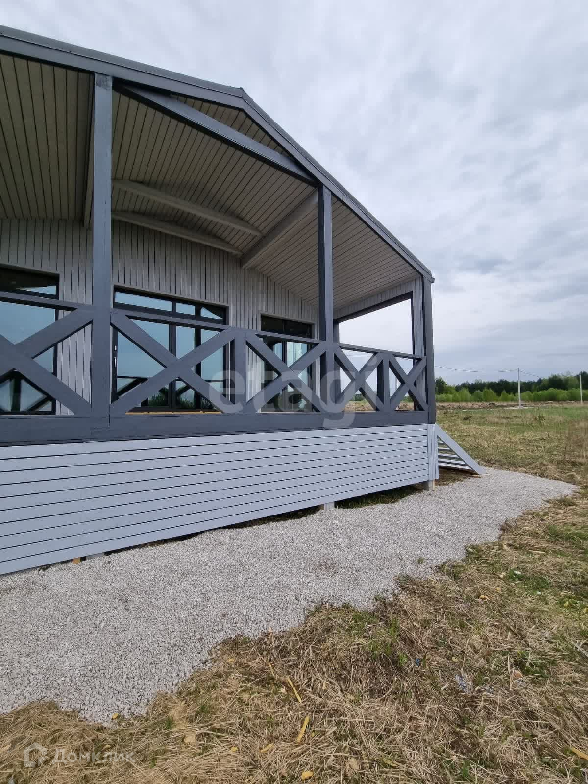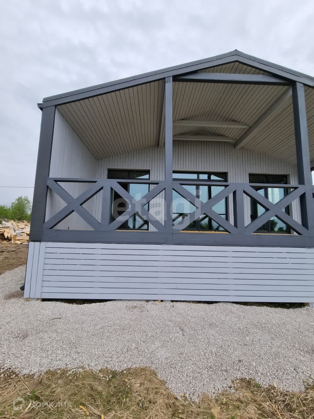 Общая площадь дома 103 м2 включающая в себя прихожую, просторную гостиную, две спальни, санузел и две большие веранды. Дом выполнен по технологии каркасного домостроения из экологически чистых и безопасных материалов и рассчитан на круглогодичное проживание. Спальни и гостиная имеют панорамное остекление, из которых имеется выход через портальные двери на большие веранды.