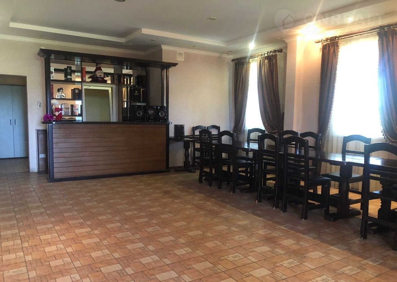 На первом этаже находятся: большая бильярдная, просторный банкетный зал для проведения различных торжеств, бассейн, сухая баня и различные подсобные помещения.