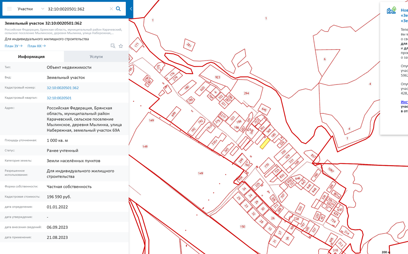 Российская Федерация, Брянская область, муниципальный район Карачевский, сельское поселение Мылинское, деревня Мылинка, улица Набережная, земельный участок 69А