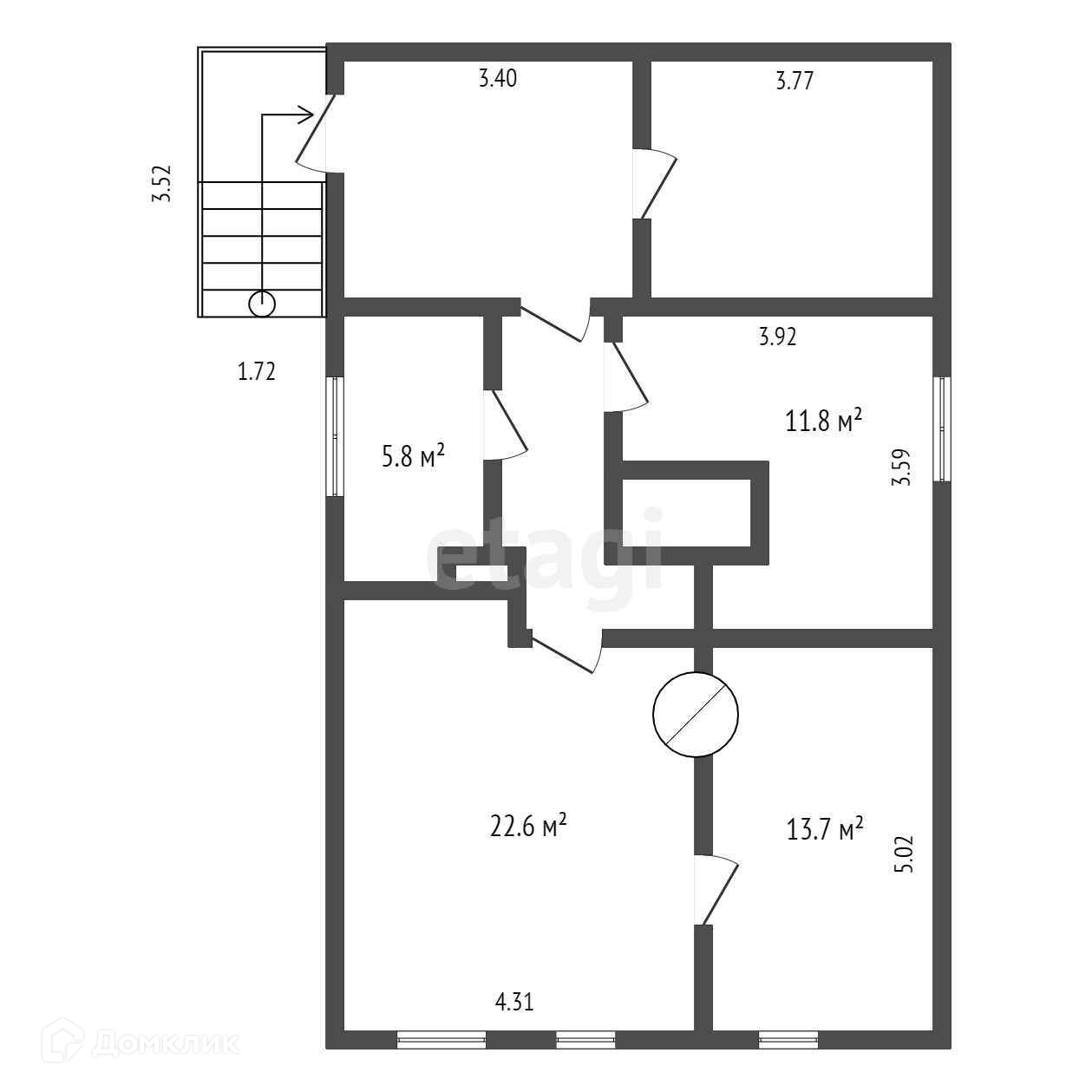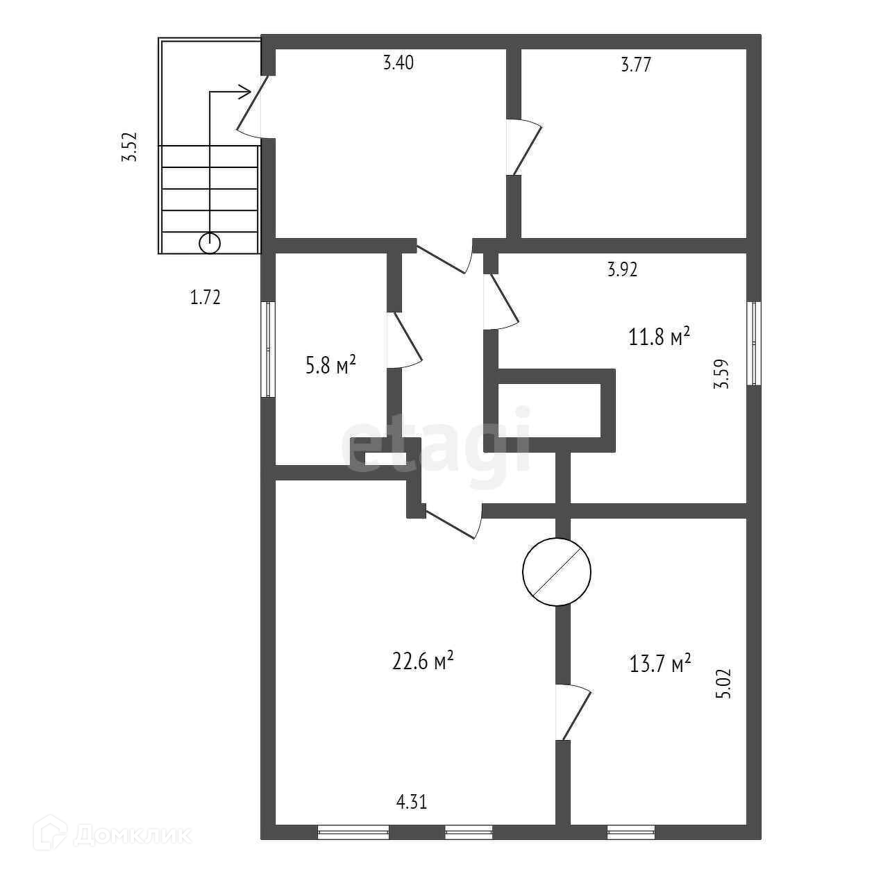 Общая площадь 59.9 м2