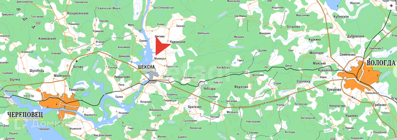 Объект находится в 30 минутах езды от рп. Шексна (23км). Рядом река Шексна, район Шекснинского водохранилища (порядка 750м), имеются места для купания, спуска маломерного речного транспорта. В близлежащей деревне Малинуха имеется полноценный стационарный продовольственный магазин. В летнее время дополнительно работает выездная торговля.