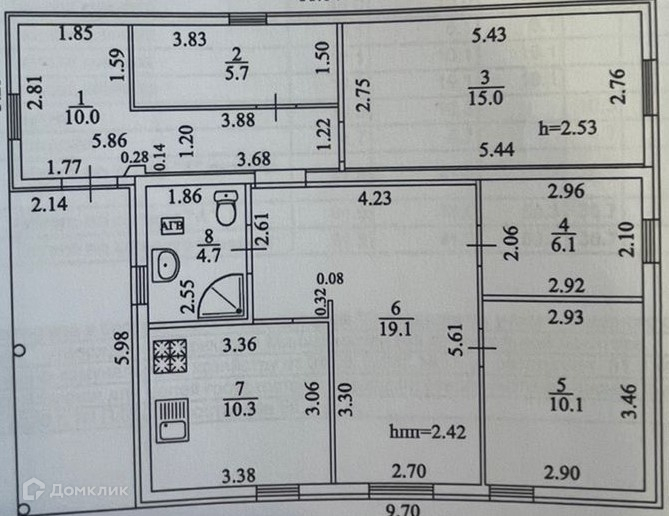 Высота потолков 2.5 м