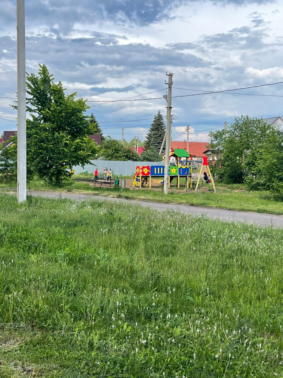 Рядом с домом новая детская площадка. Через дорогу остановка, детей довозит до школы и привозит обратно