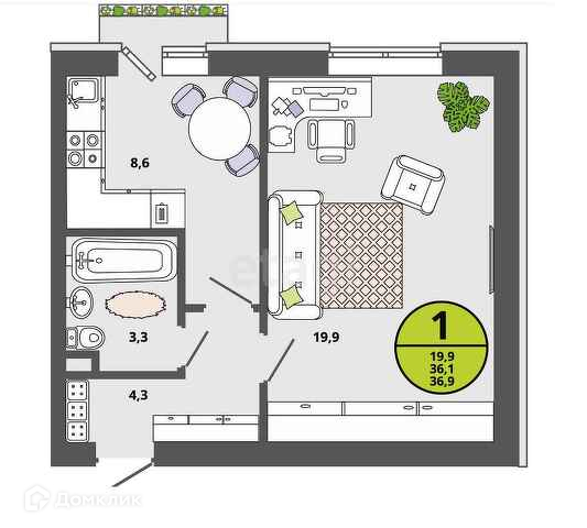 Общая площадь 36.1 м2