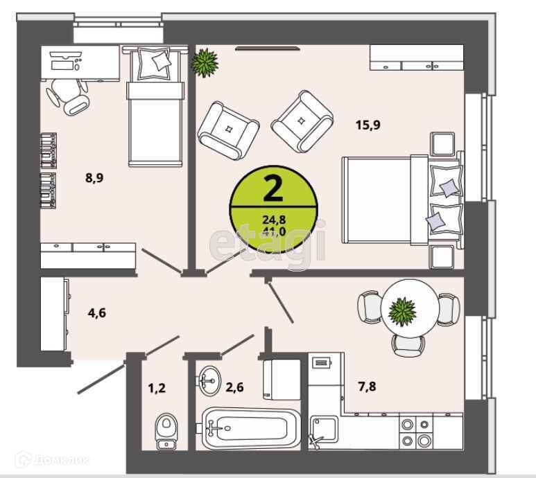 Общая площадь 41.2 м2
