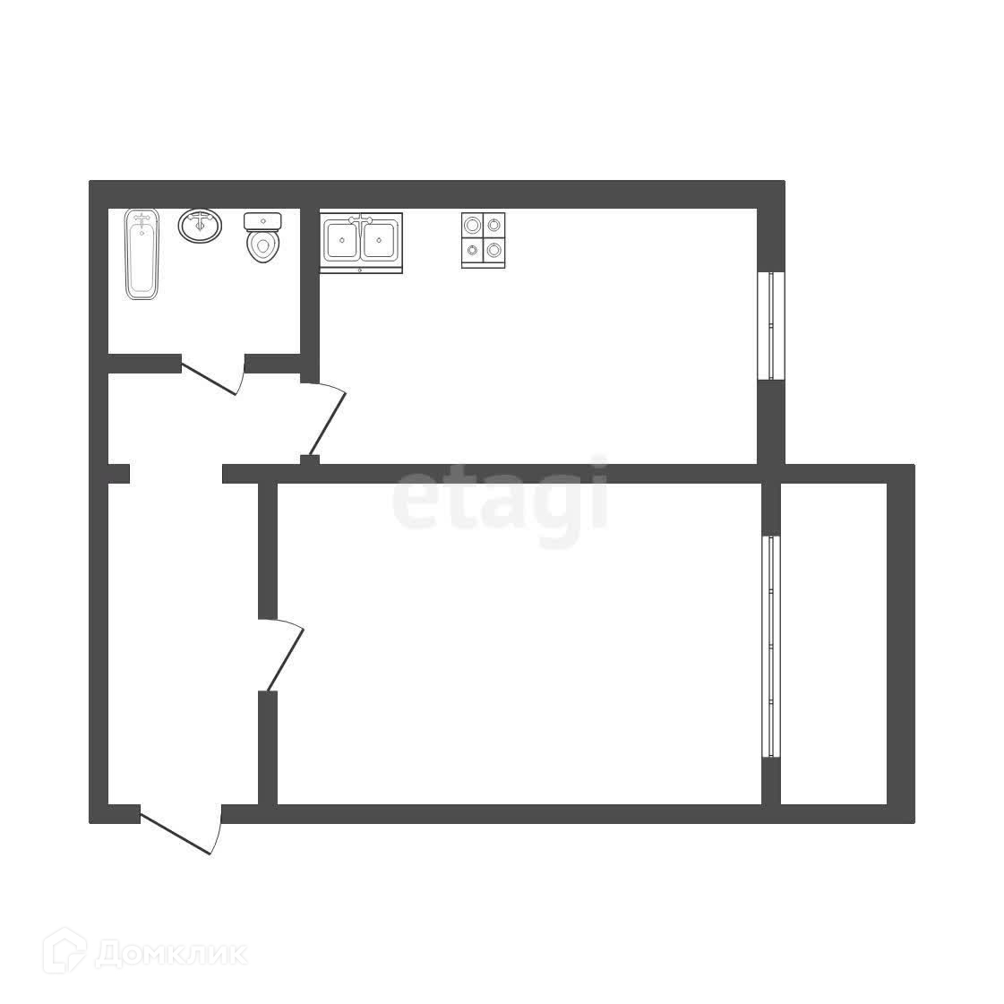 Общая площадь 33.3 м2