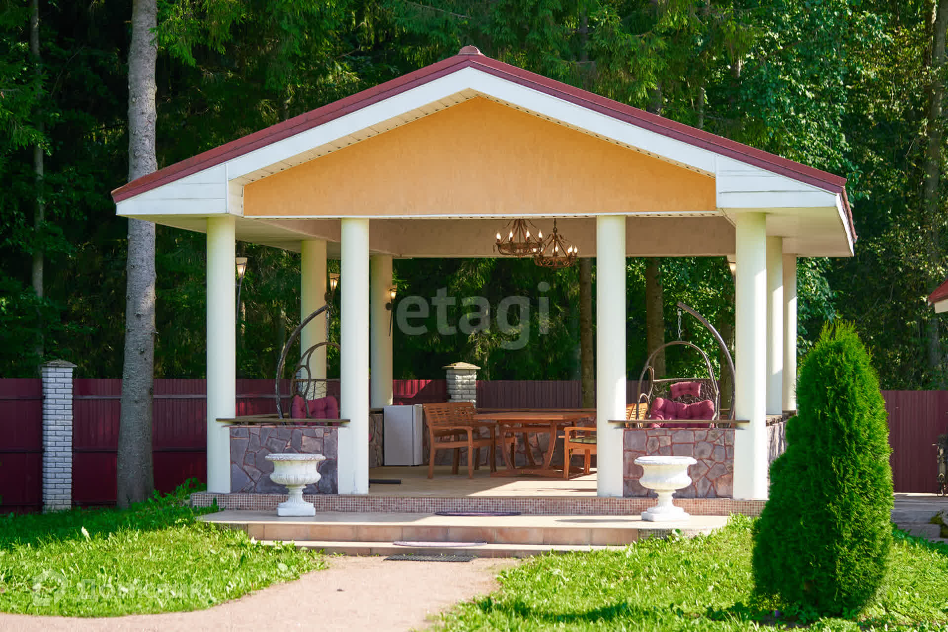 -Летняя беседка с колоннами из бетона,гриль