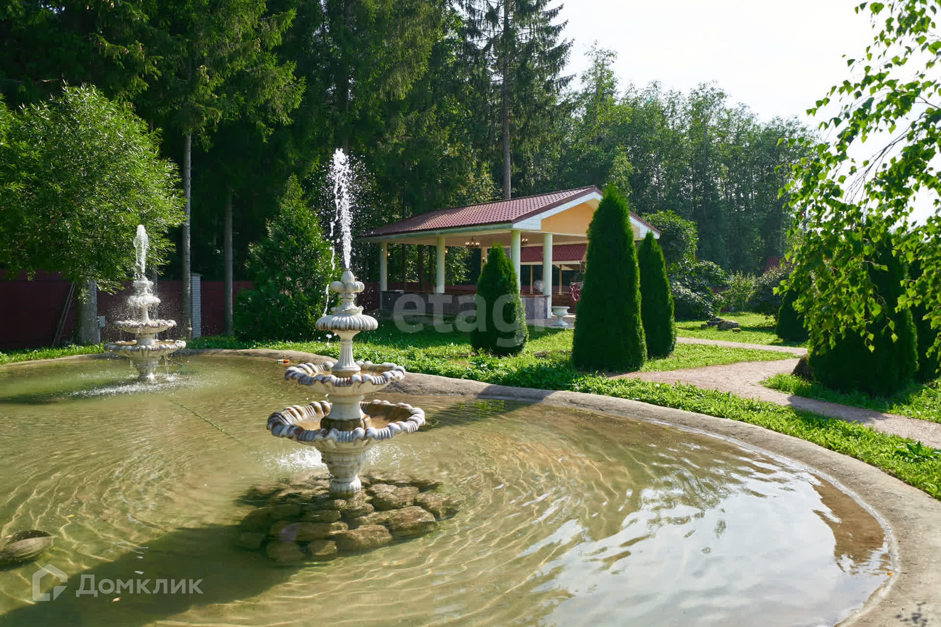 -Бетонный пруд с двумя фонтанами