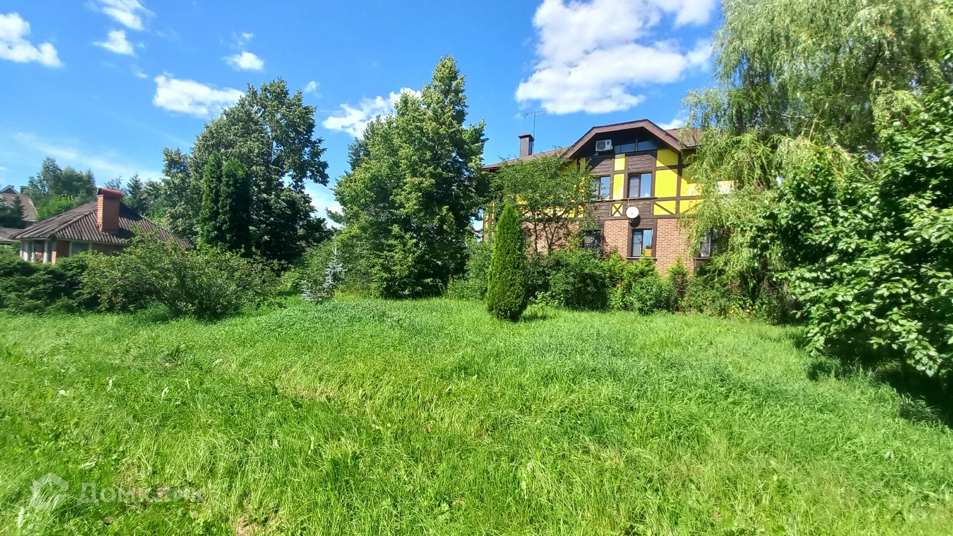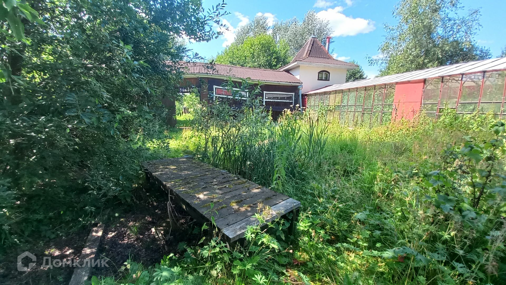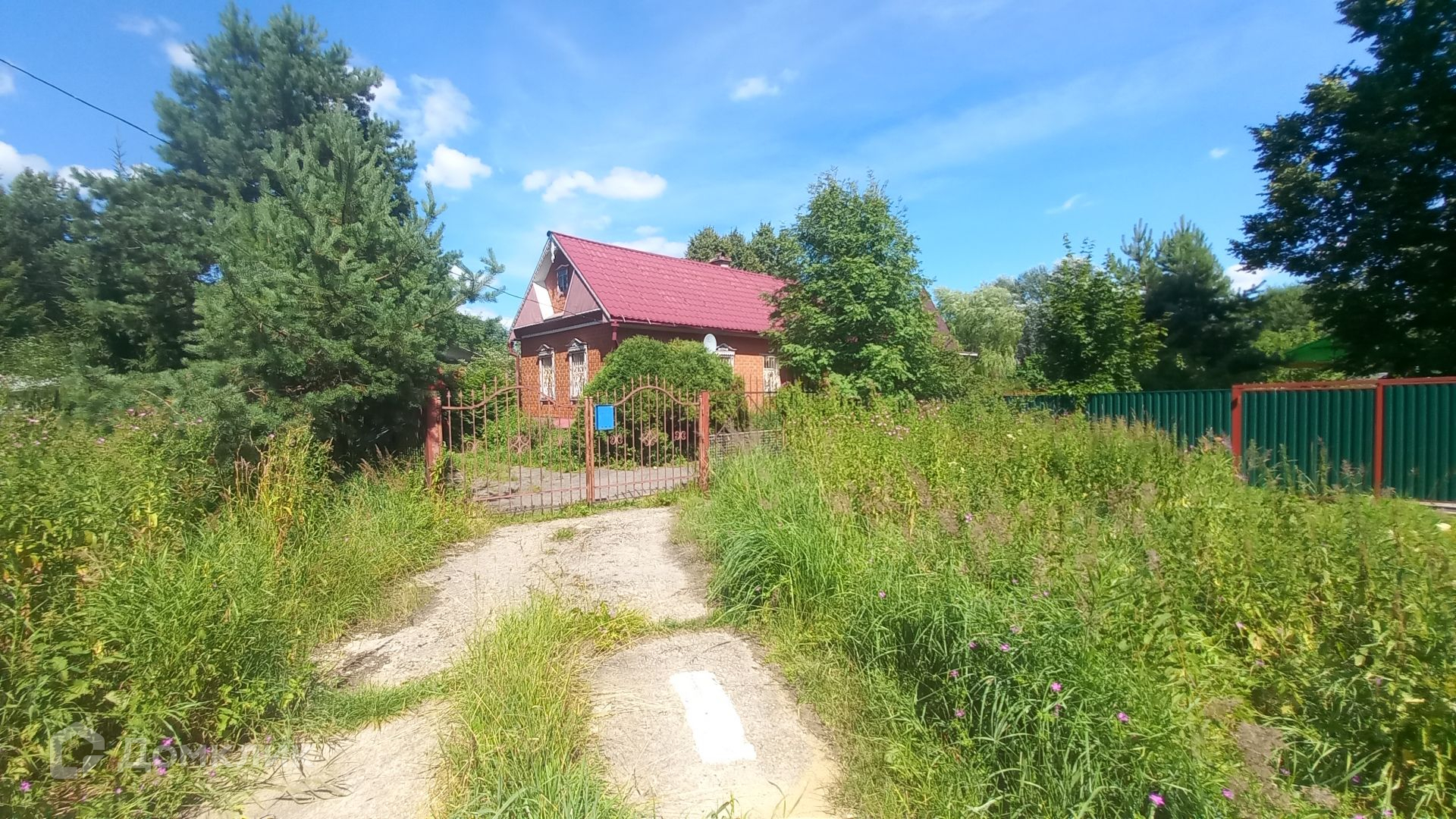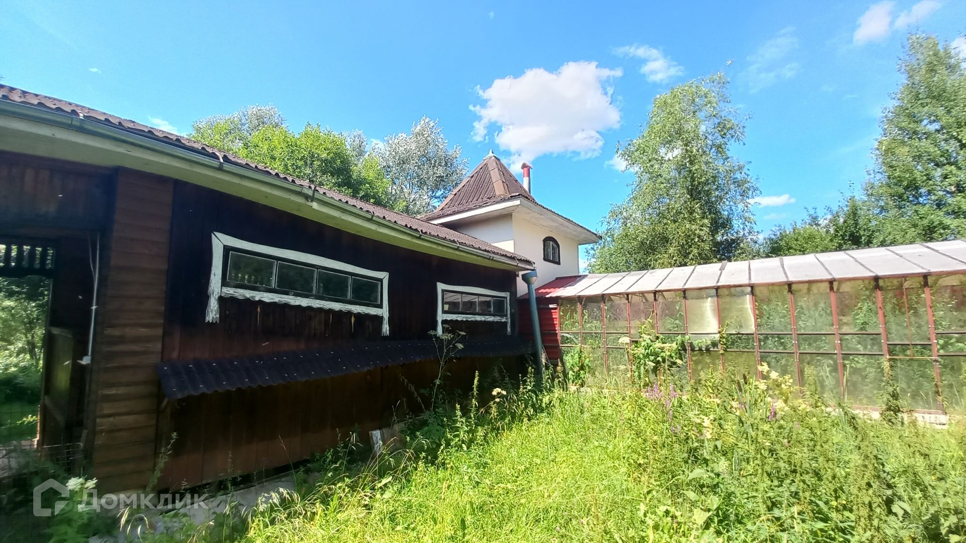 Площадь участка составляет 29 соток. Участок ровный, правильной прямоугольной формы, по всему периметру огорожен. На участке также расположены: летняя кухня 18 кв.м, гостевой дом с двумя башнями площадью 50 кв.м, добротная стеклянная теплица площадью 40 кв.м, баня (с зоной отдыха, кухней, парилкой и душевой, баня подключена к скважине), большой гараж (материал стен газоблок), шикарный пруд и купель, (в пруд заведена рыба), хвойные, плодовые деревья, вишня, туя, плодовые кустарники, цветочные растения.