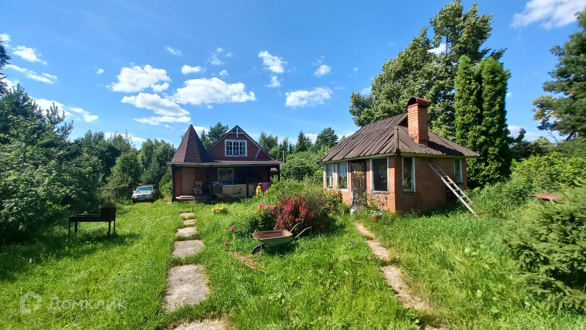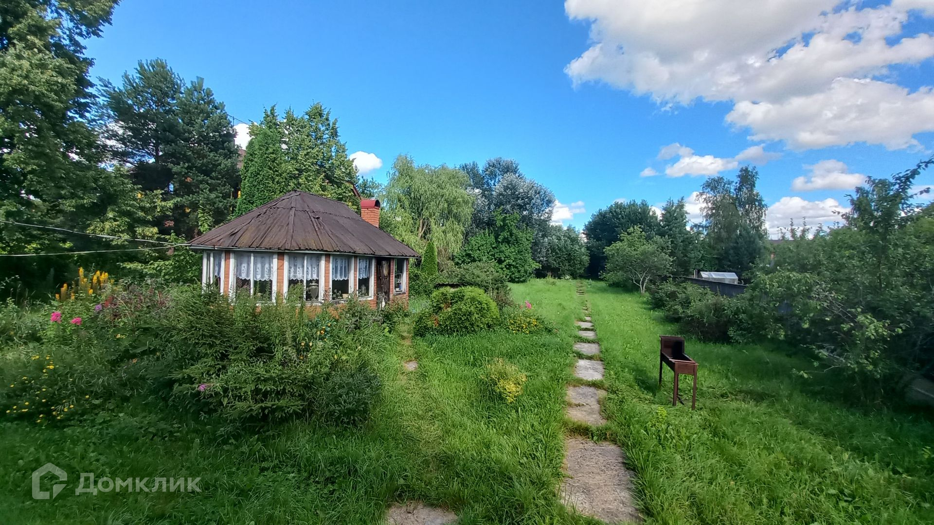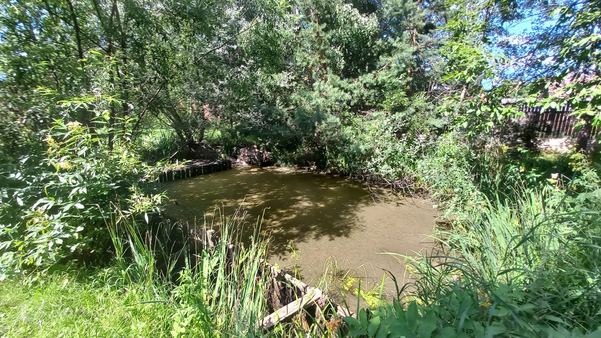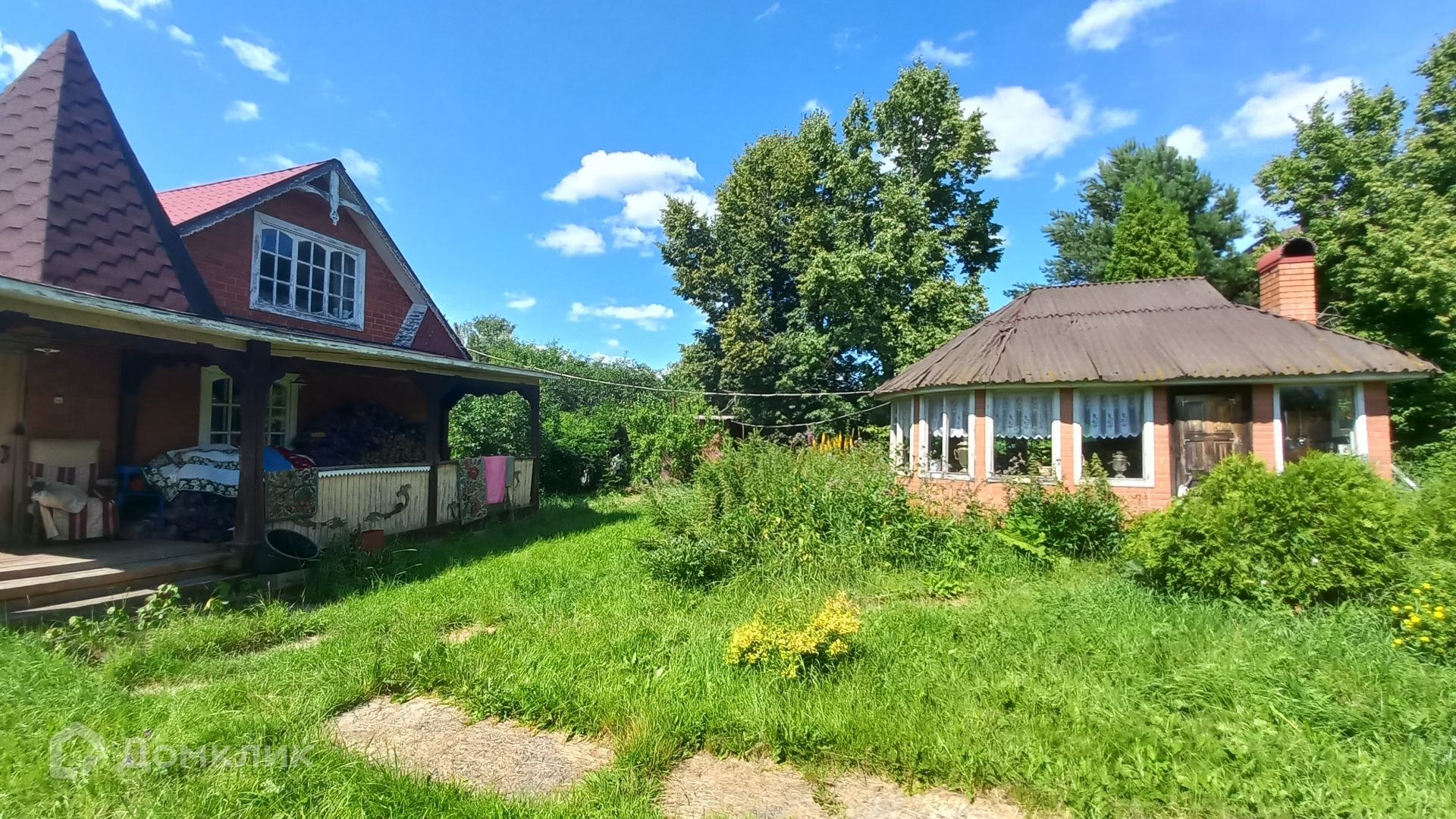 Площадь участка составляет 29 соток. Участок ровный, правильной прямоугольной формы, по всему периметру огорожен. На участке также расположены: летняя кухня 18 кв.м, гостевой дом с двумя башнями площадью 50 кв.м, добротная стеклянная теплица площадью 40 кв.м, баня (с зоной отдыха, кухней, парилкой и душевой, баня подключена к скважине), большой гараж (материал стен газоблок), шикарный пруд и купель, (в пруд заведена рыба), хвойные, плодовые деревья, вишня, туя, плодовые кустарники, цветочные растения.
